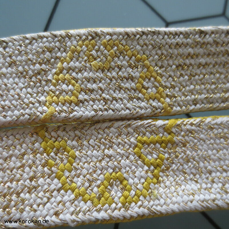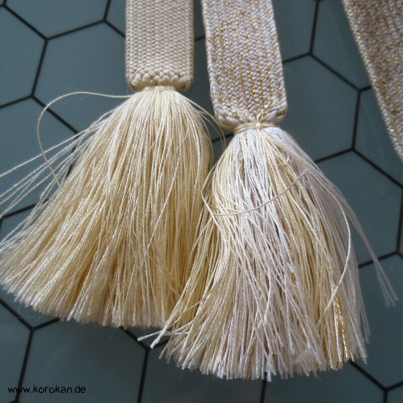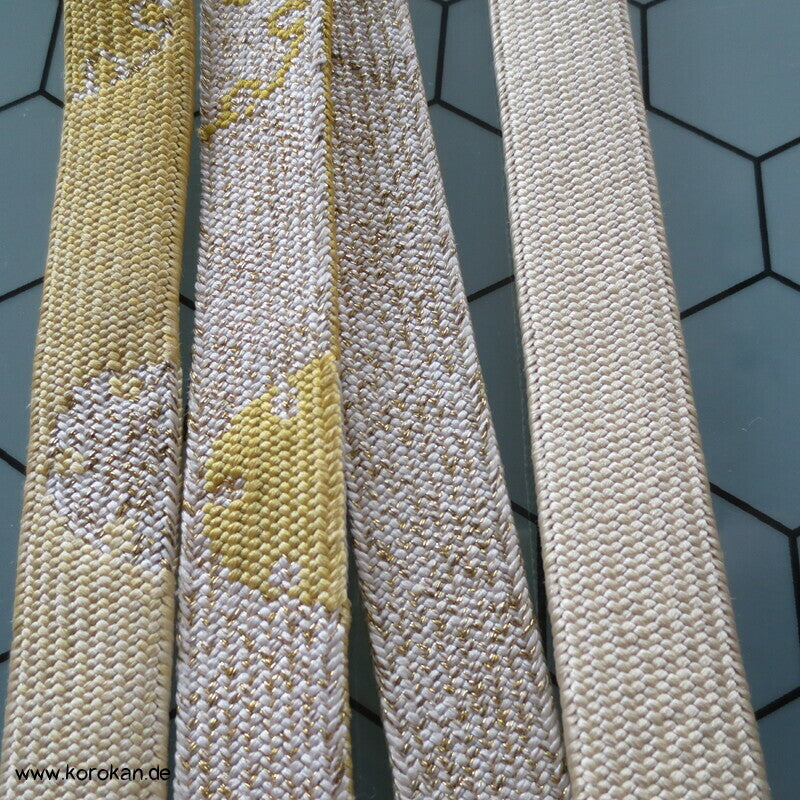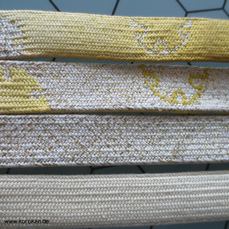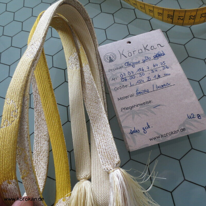 Vintage flacher Obijime gelb gold Schneeflocke Obijime, Seide / Lurex