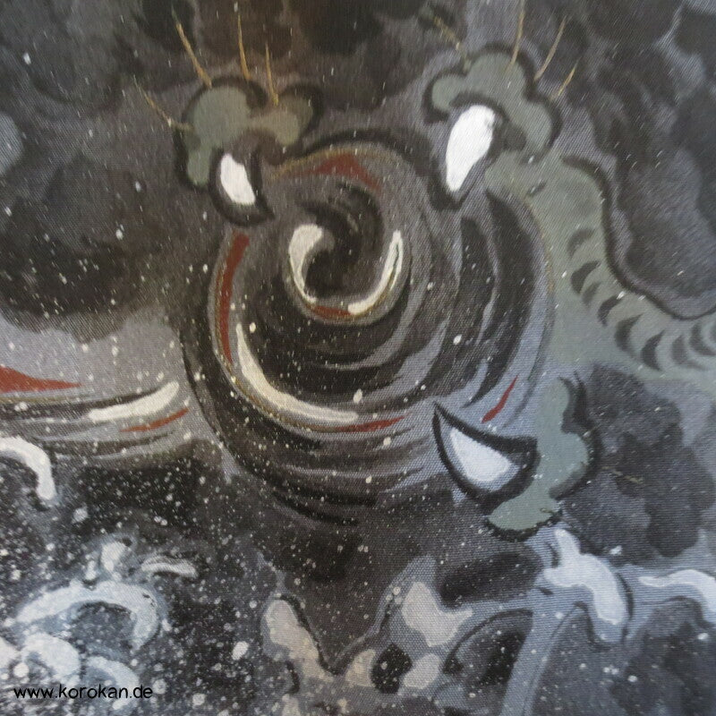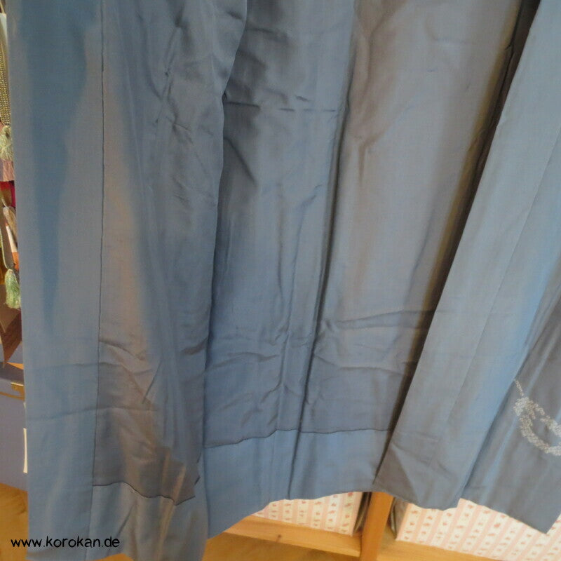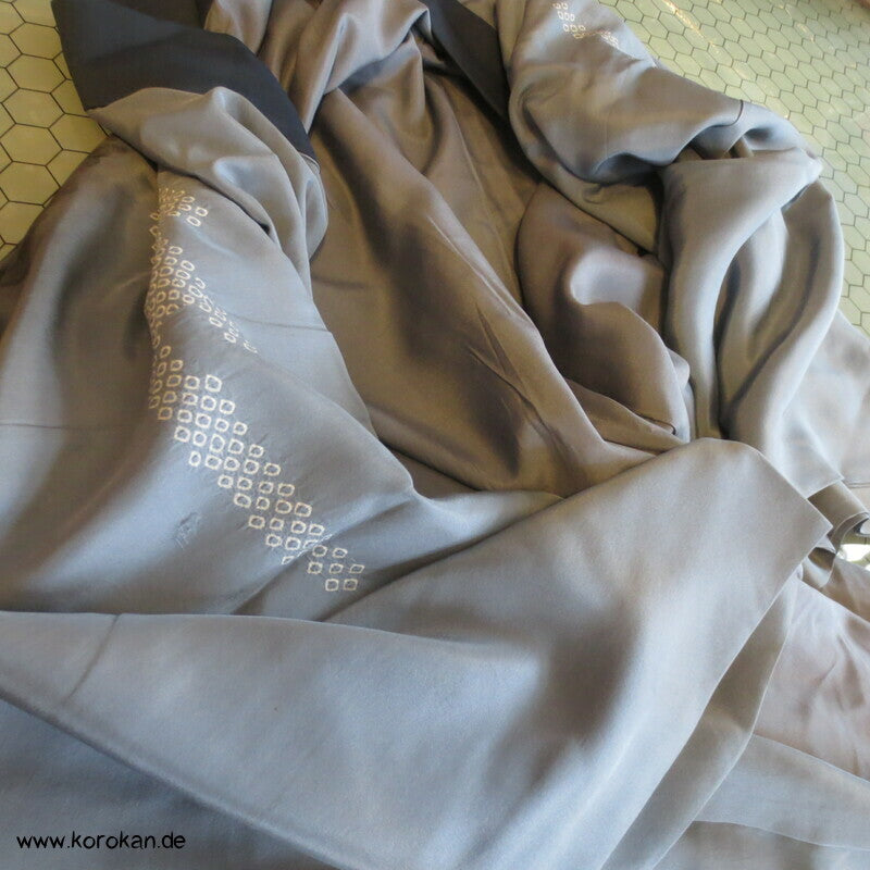 Vintage Männer Juban Unter Kimono, Farbverlauf Seidencrepe mit einem handgemalten Drachen Motiv im Rücken, voll gefüttert mit blassblaugrauer Seide und einem schwarzblauen Ripskragen.