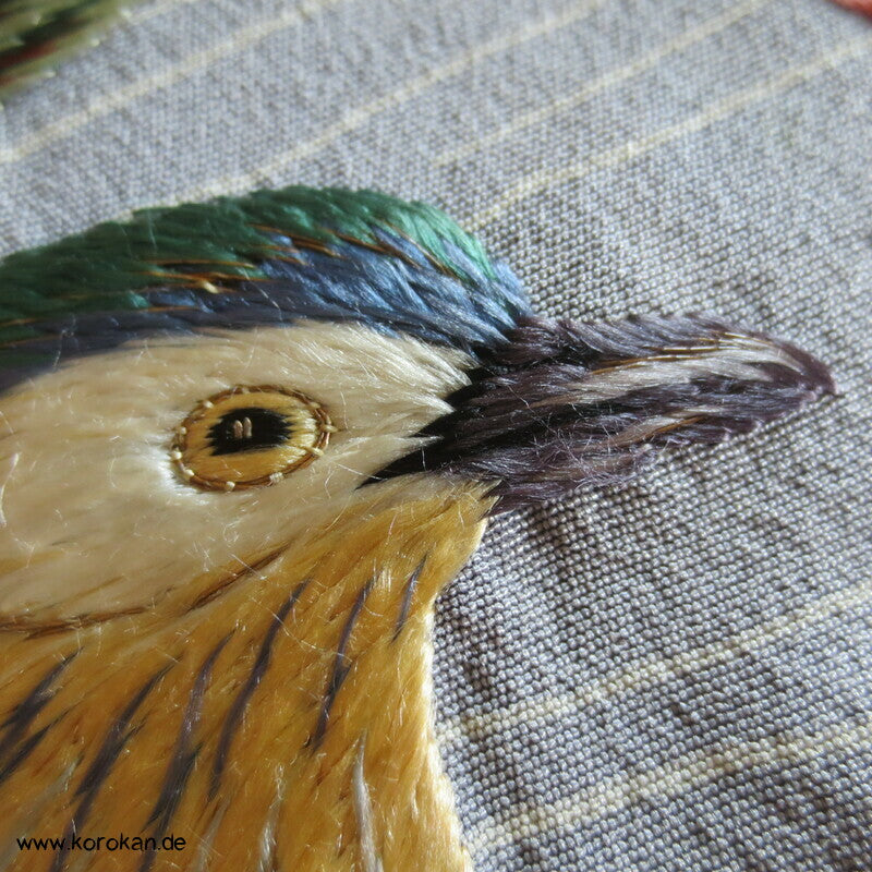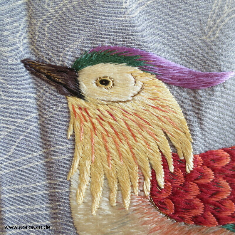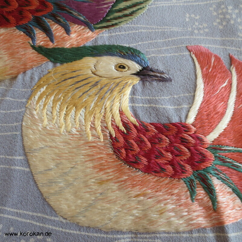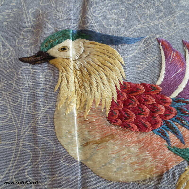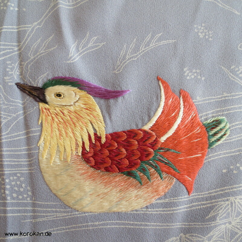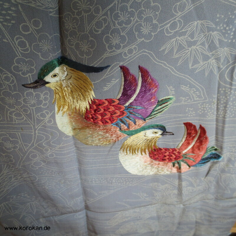gestickte Mandarinenten auf blaugrau Homongi Kimono