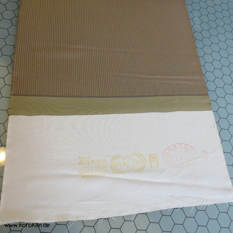 Vintage unbenutzte Tanmono Stoffrolle Seidencrepe Längsstreifen in grau braun, sehr dezent
