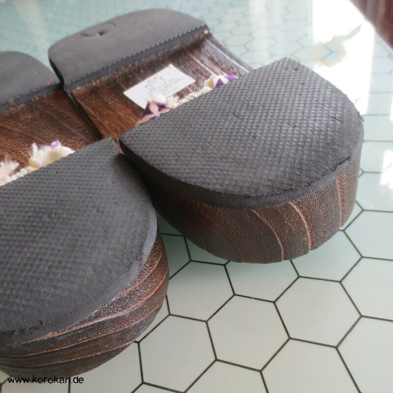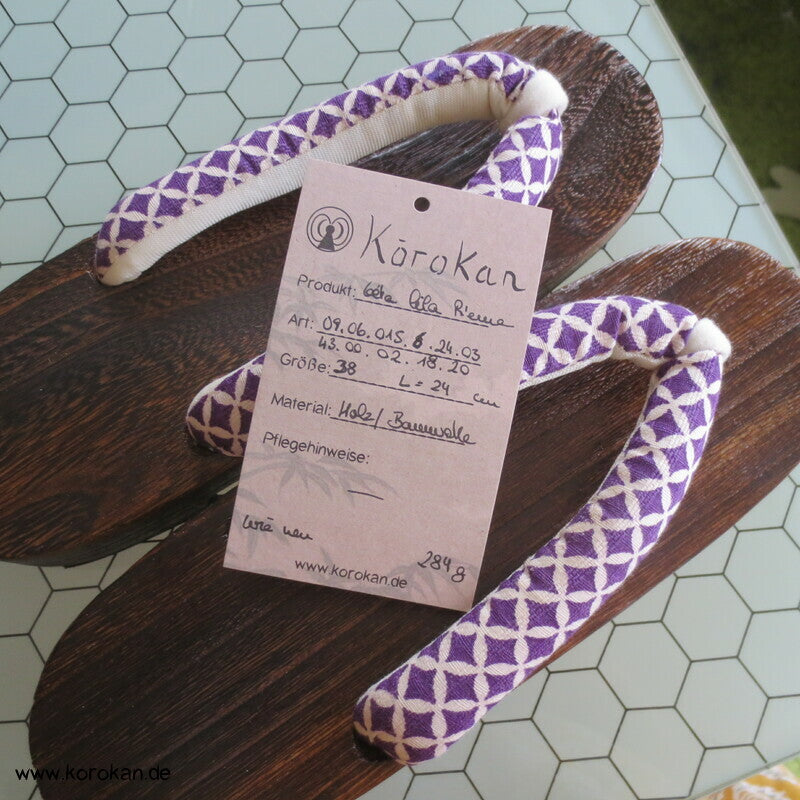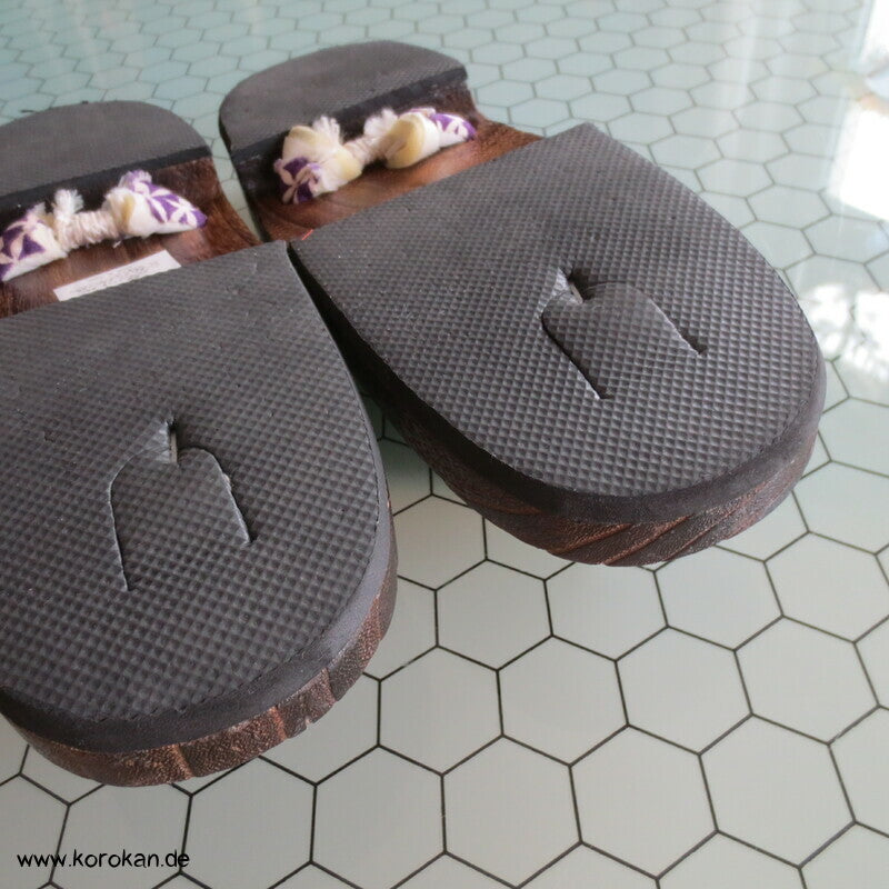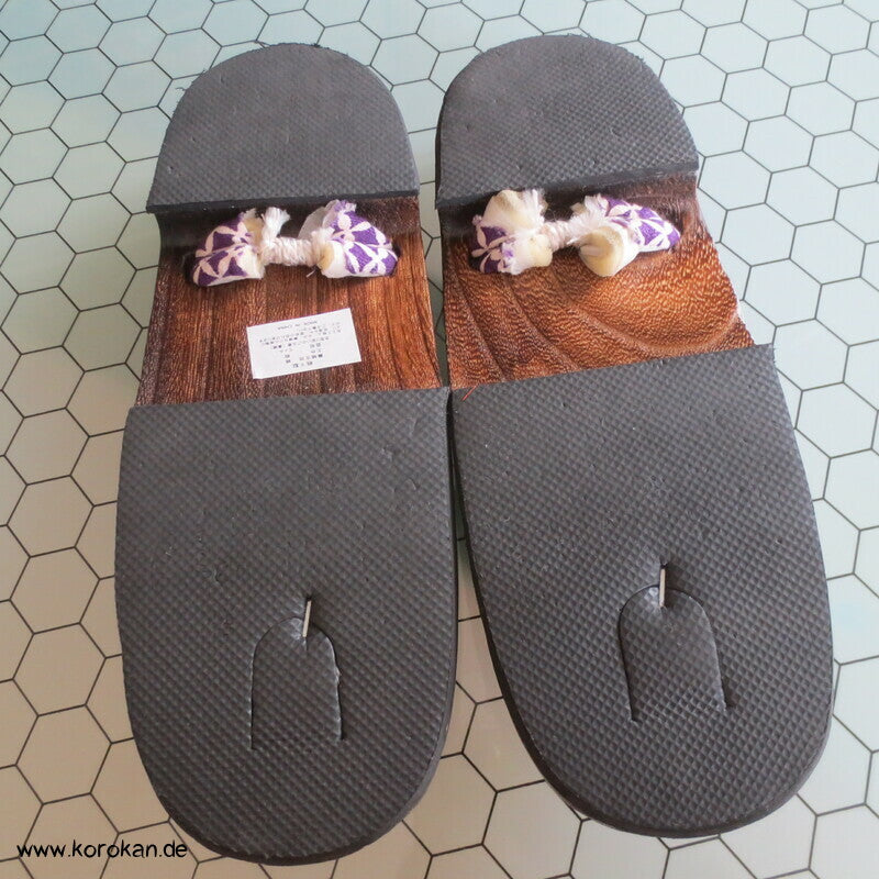 Vintage Geta Holzsohle mit Stoffriemen in lila shippo - wohl nur einmal getragen, so gut wie neu