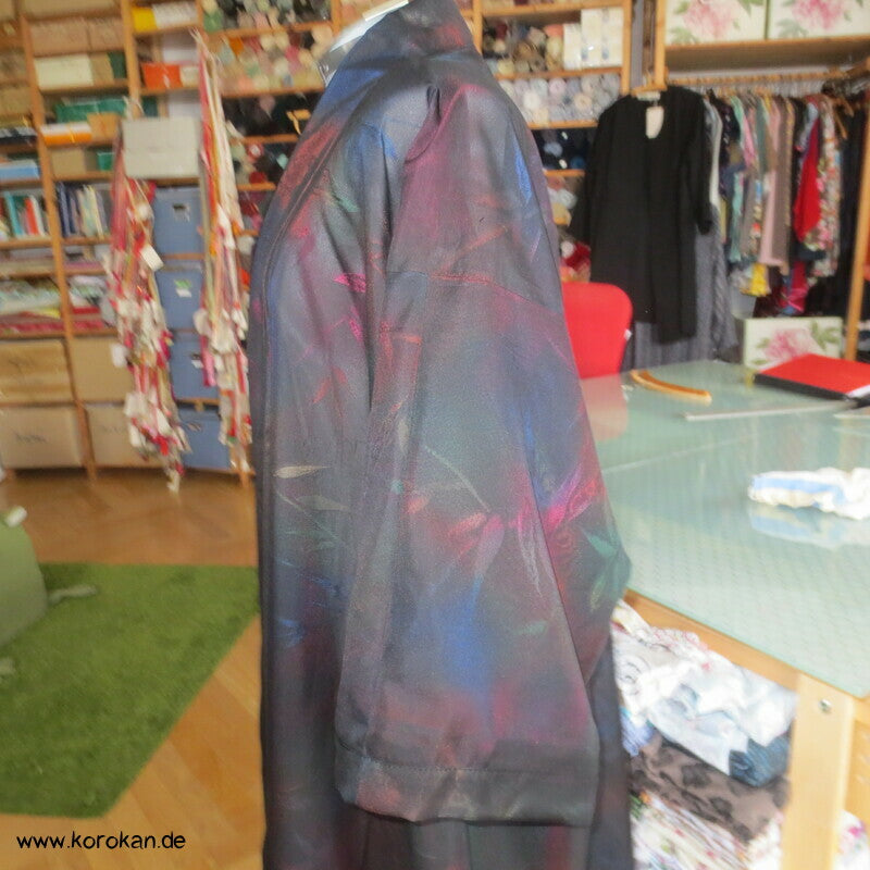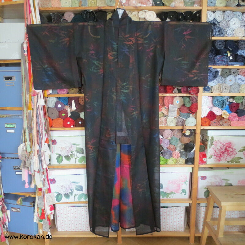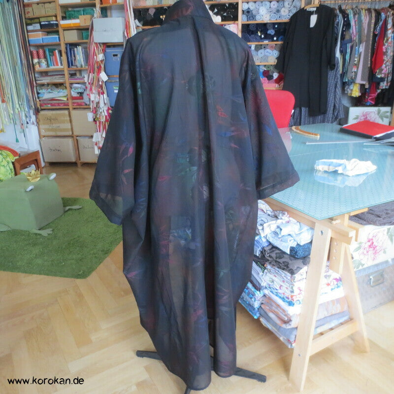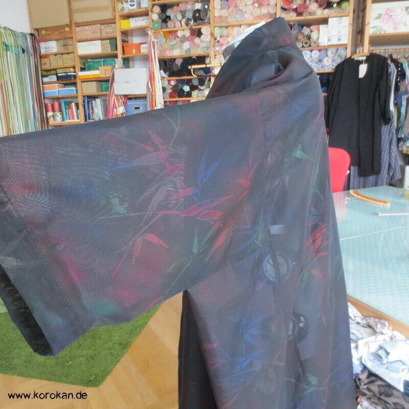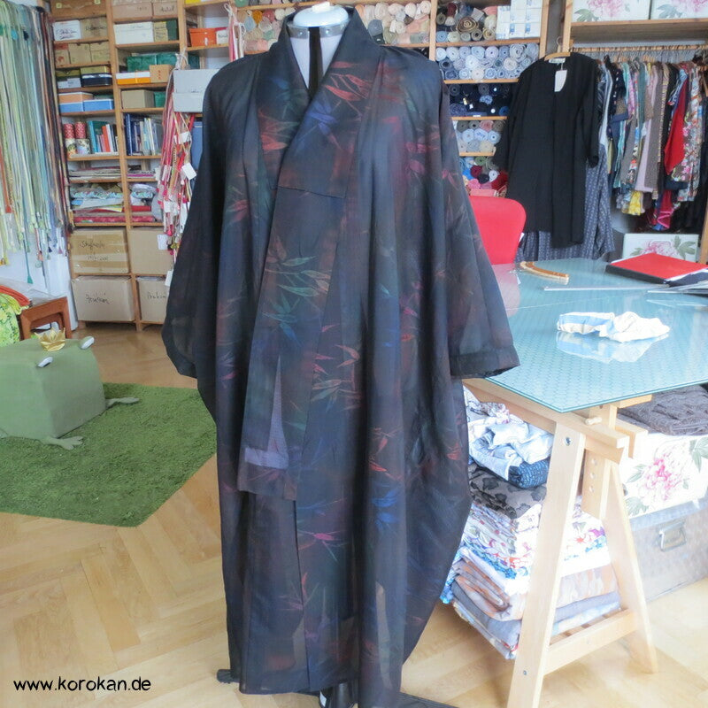 Morgenmantel / Abendmantel aus Vintage Sha Muster Drehergewebe Seide Kimono Bambus bunt in schwarz, für den Sommer oder als Negligée