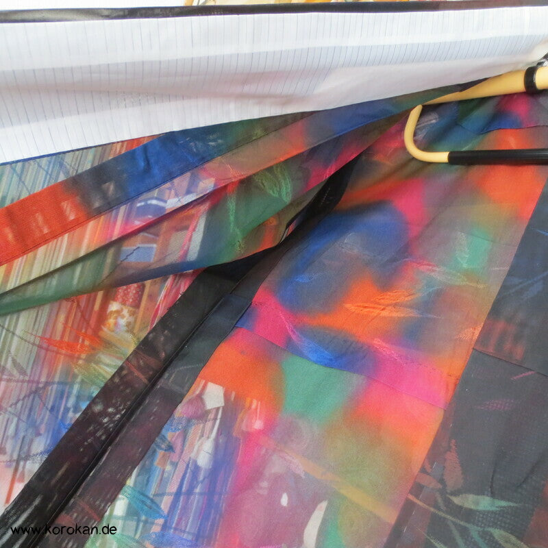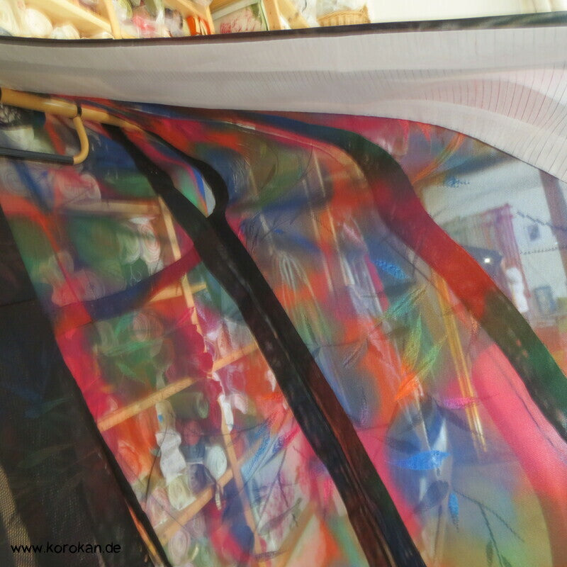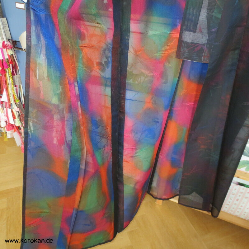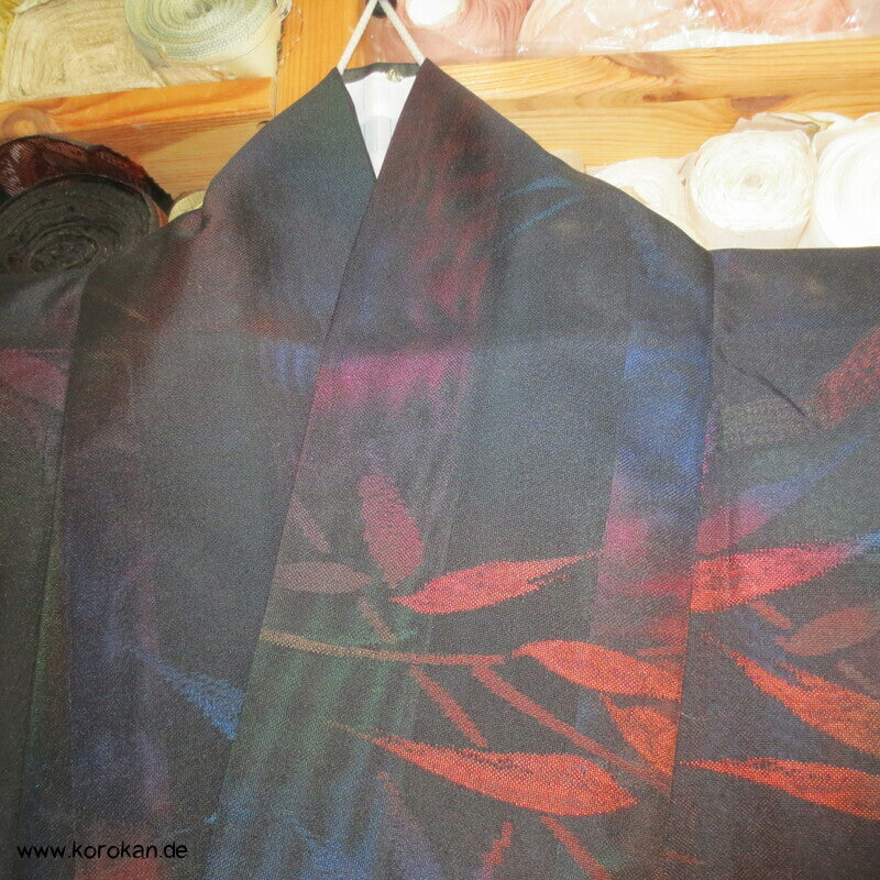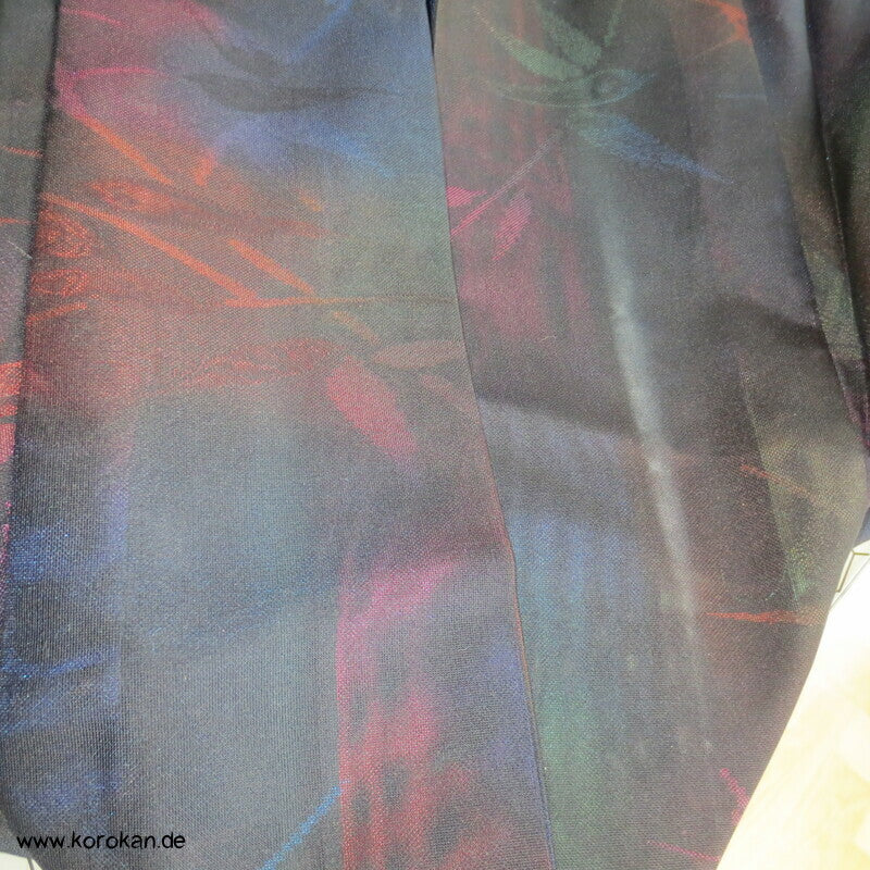 Morgenmantel / Abendmantel aus Vintage Sha Muster Drehergewebe Seide Kimono Bambus bunt in schwarz, für den Sommer oder als Negligée