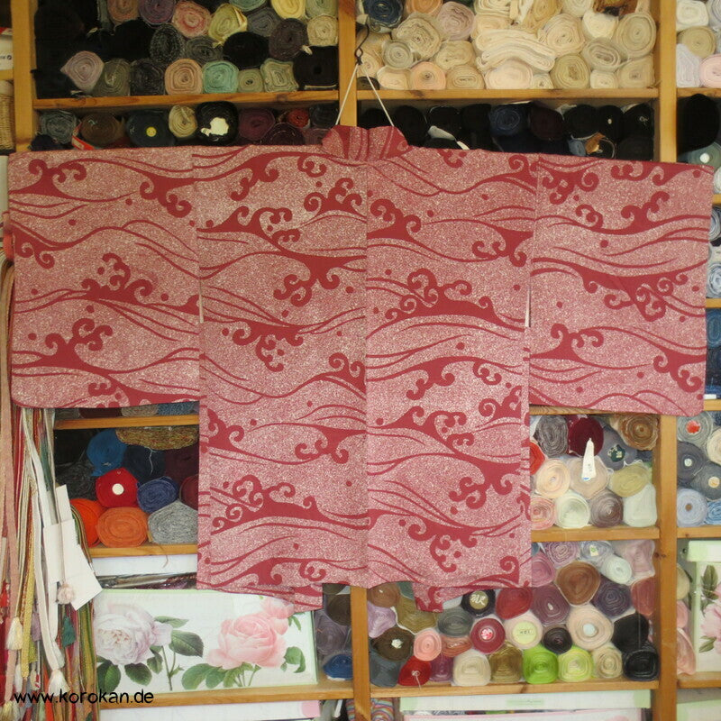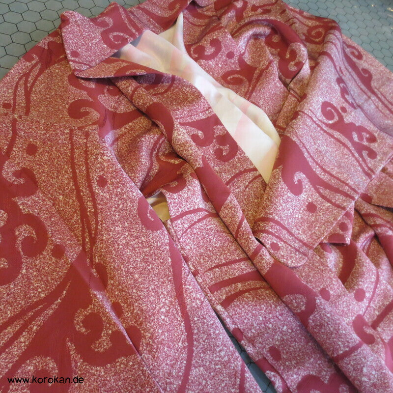 gewebte und gedruckte Wellen in blassrot Seidendamast Haori Kimono Jacke