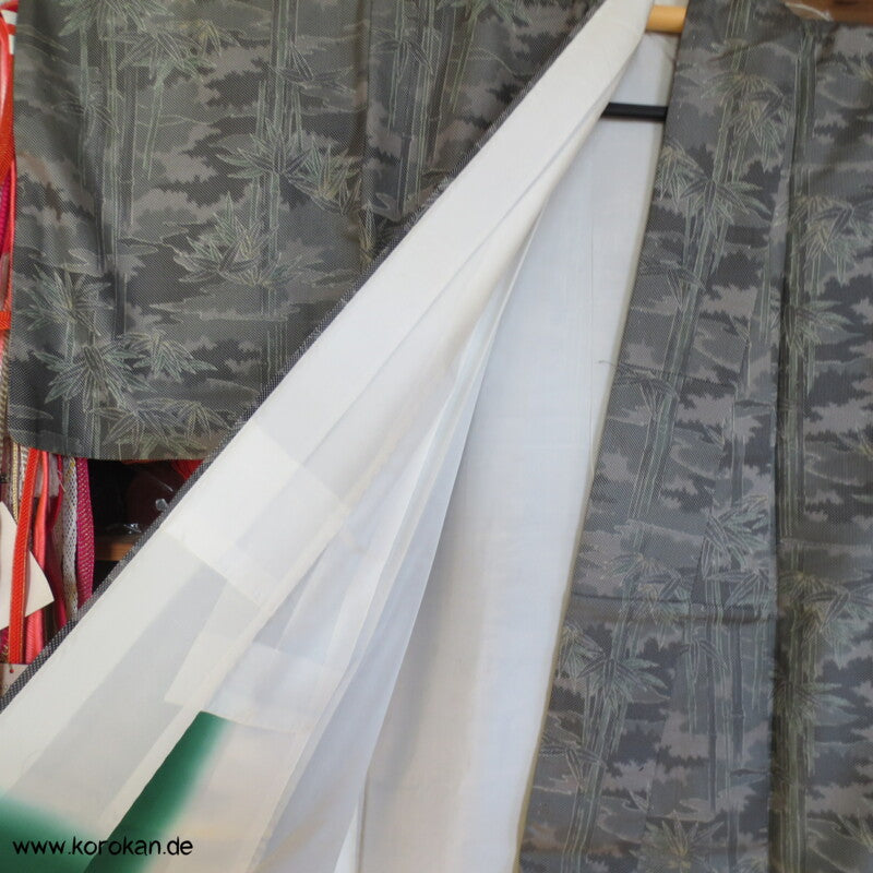 gewebtes Bambusmuster in grauer Tsumugi Seiden Kimono