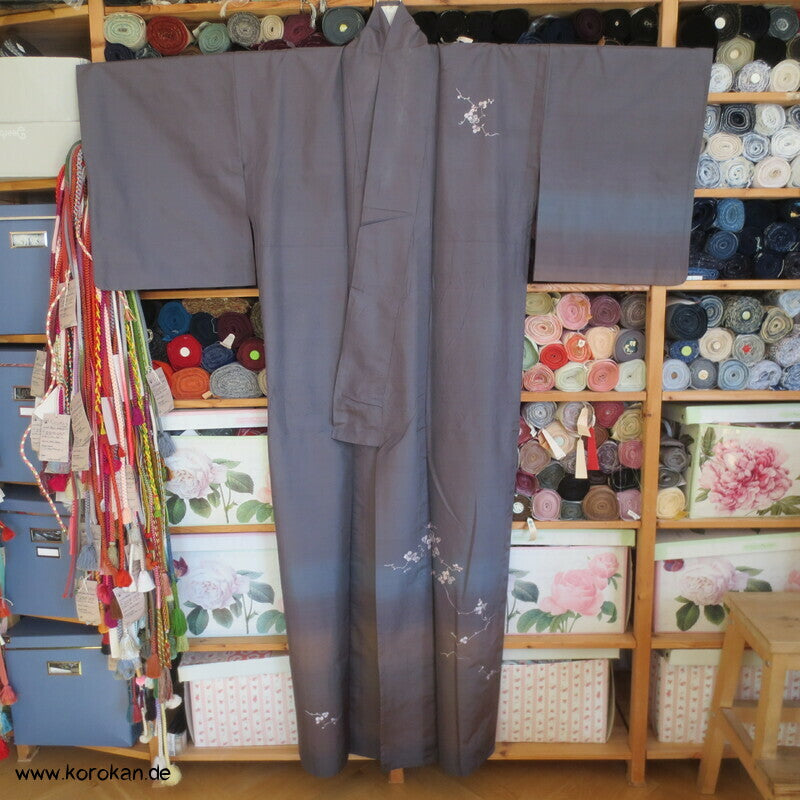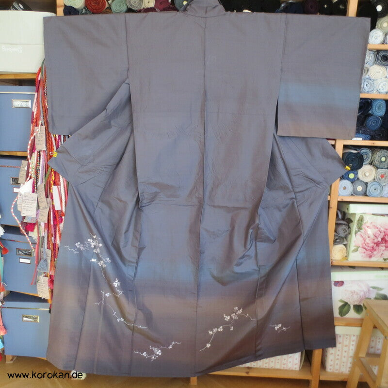 gewebtes Bokashi, gestickte Zweige Hitoe Tsukesage Seiden Kimono