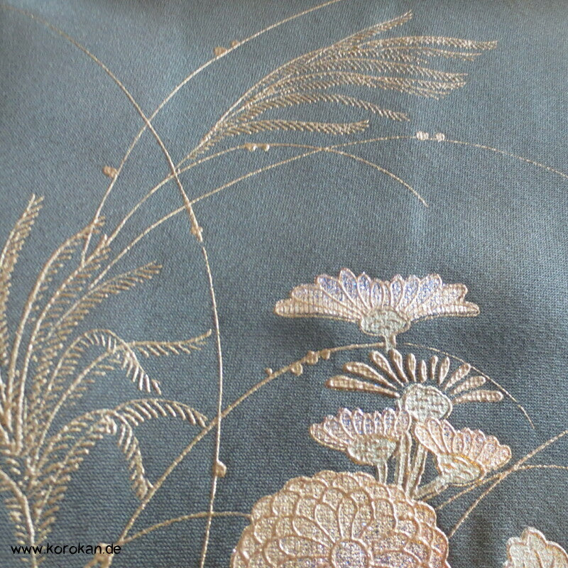 Glitzerblumen auf dunkelpetrolgrau Homongi Seidencrepe Kimono