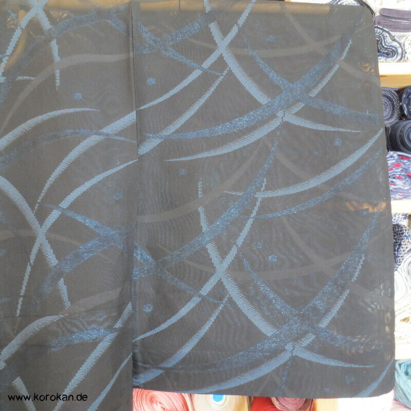 glitzernde blaue Gräser, Hitoe Kimono, halbtransparent Sha Seide