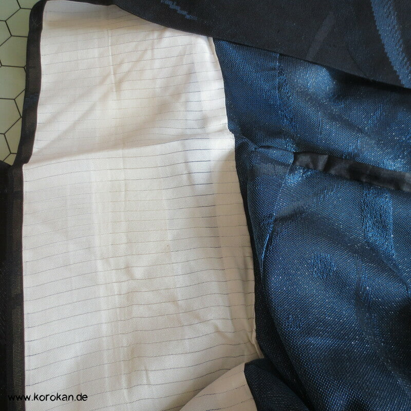 Vintage Drehergewebe Rho Seide Kimono glänzende blaue Gräser in schwarz, richtig kühl, für den Sommer oder als Negligée