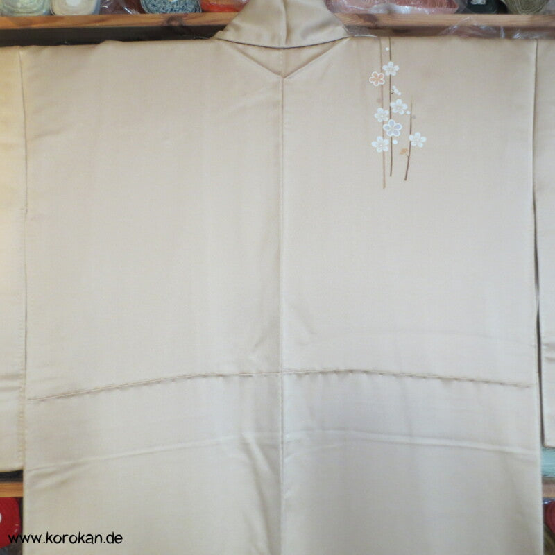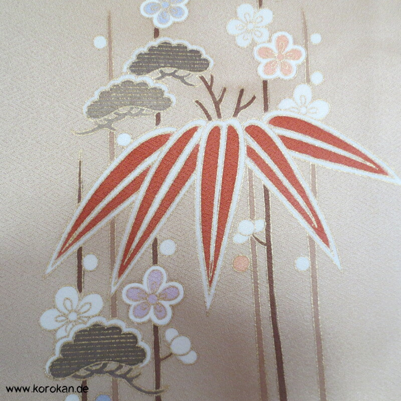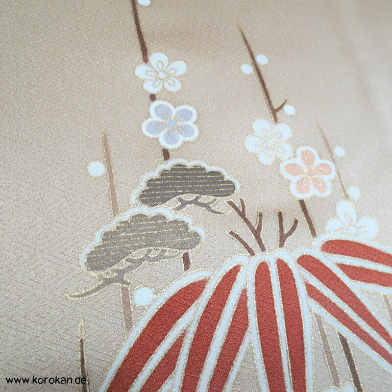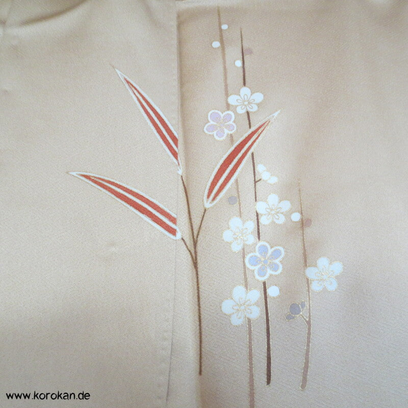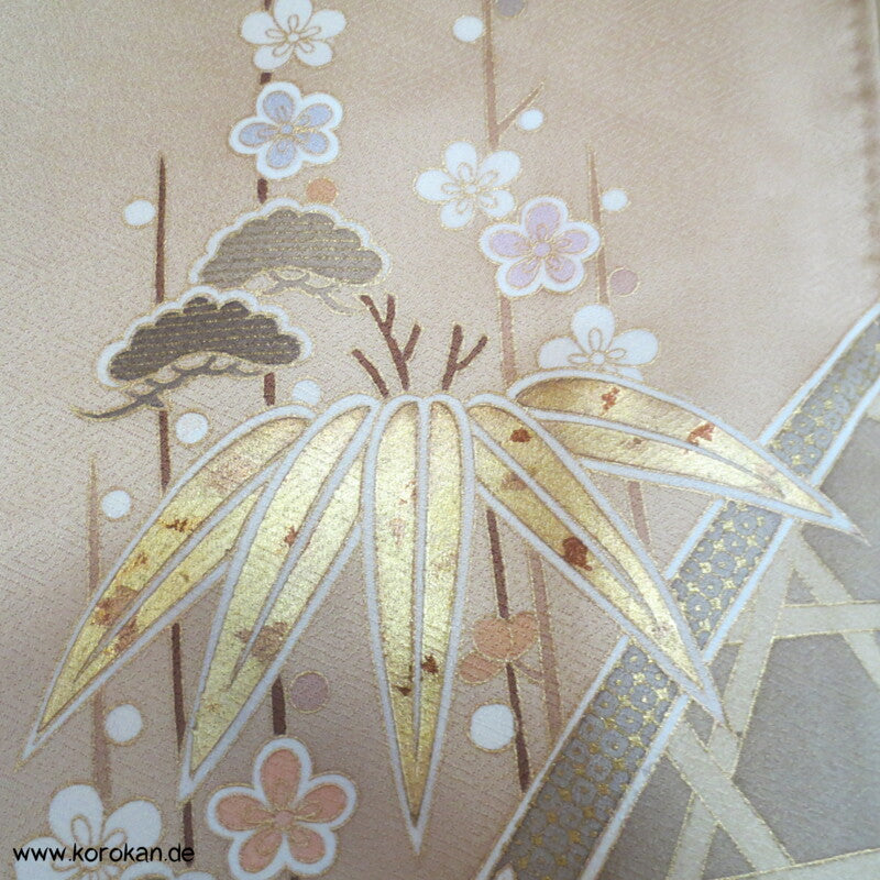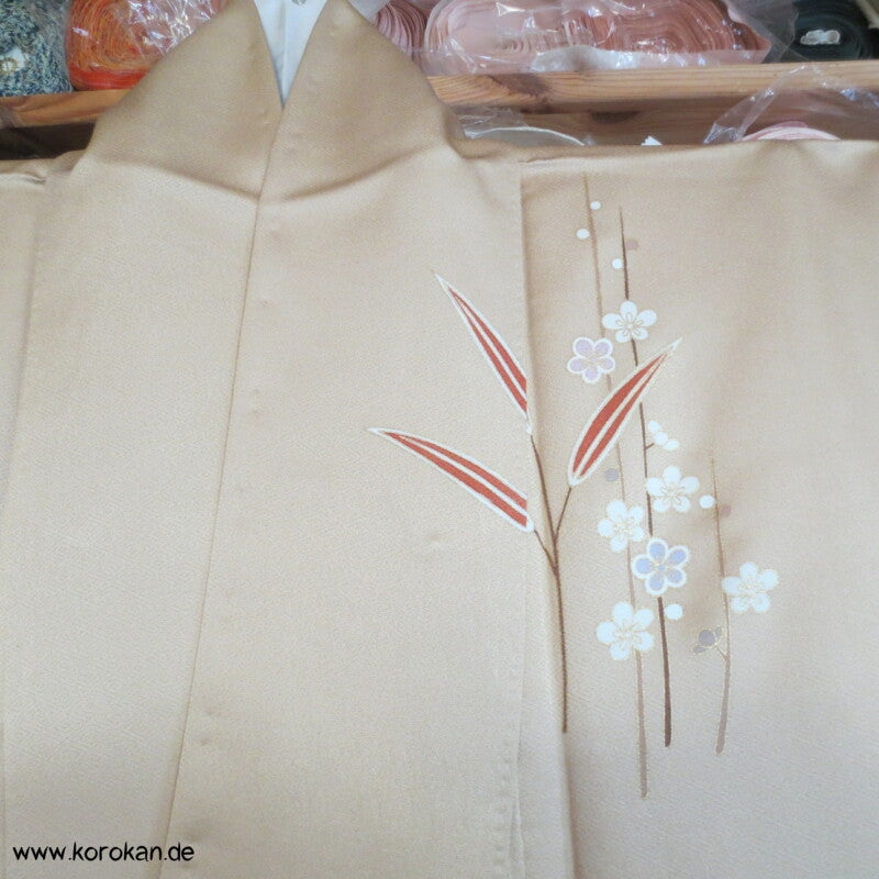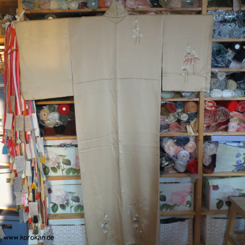 Homongi Kimono gold beige Seidendamast mit Bambusgitter und Blätter