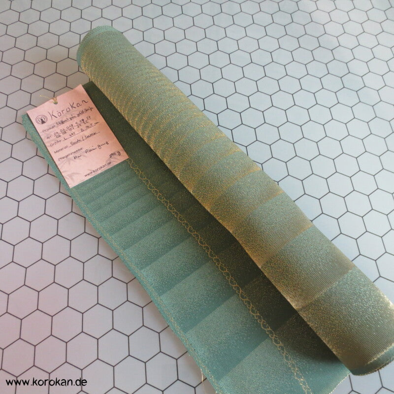 gold graugrüne Ombré Kettstreifen Kimono Stoffrest, Seidenbrokat