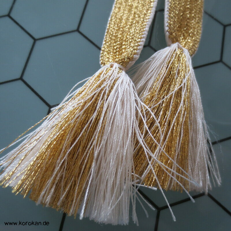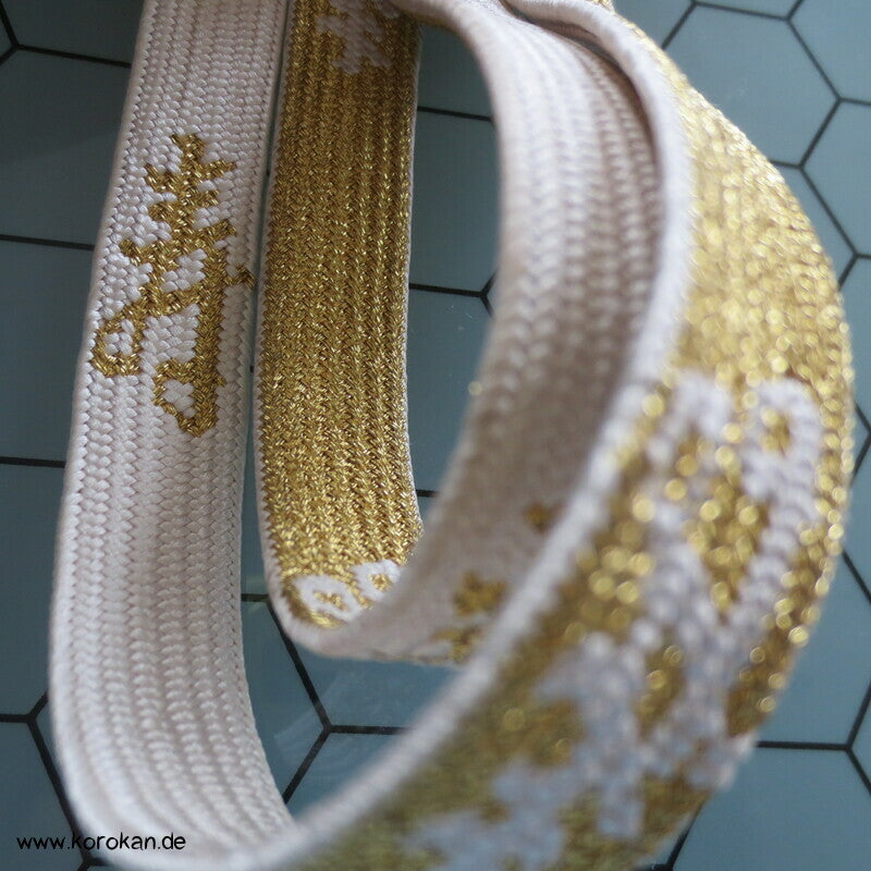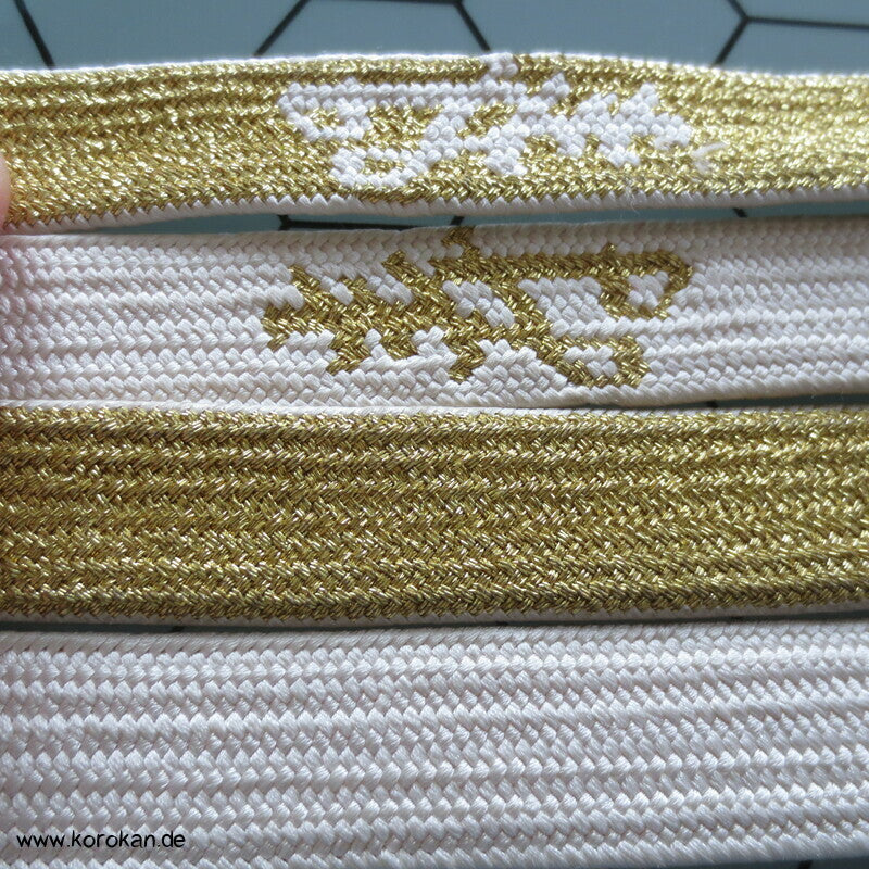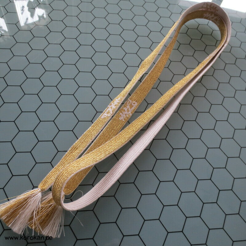 Vintage flacher Obijime gold weiß, Kanji Obijime, Seide / Lurex, Hochzeit