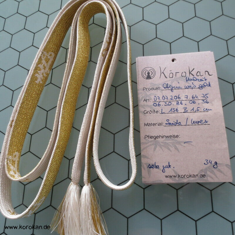 gold weiß, Kanji Obijime, Seide / Lurex, Hochzeit