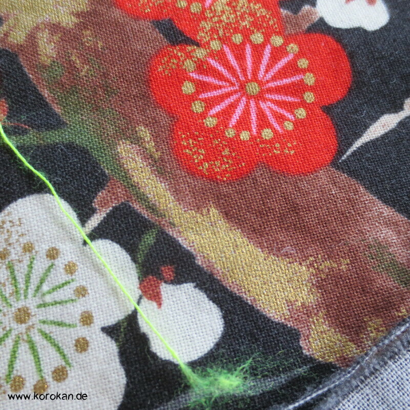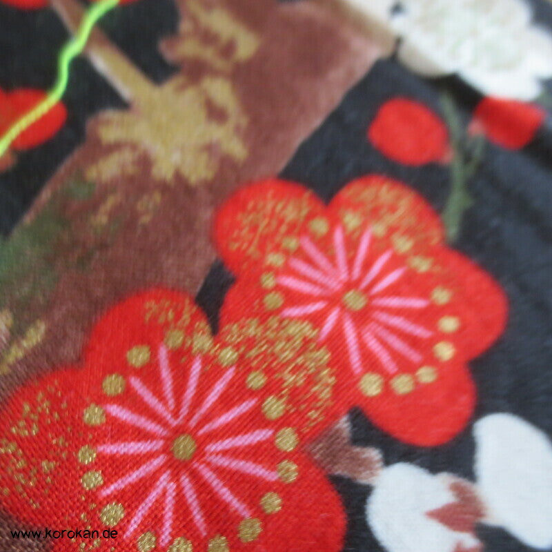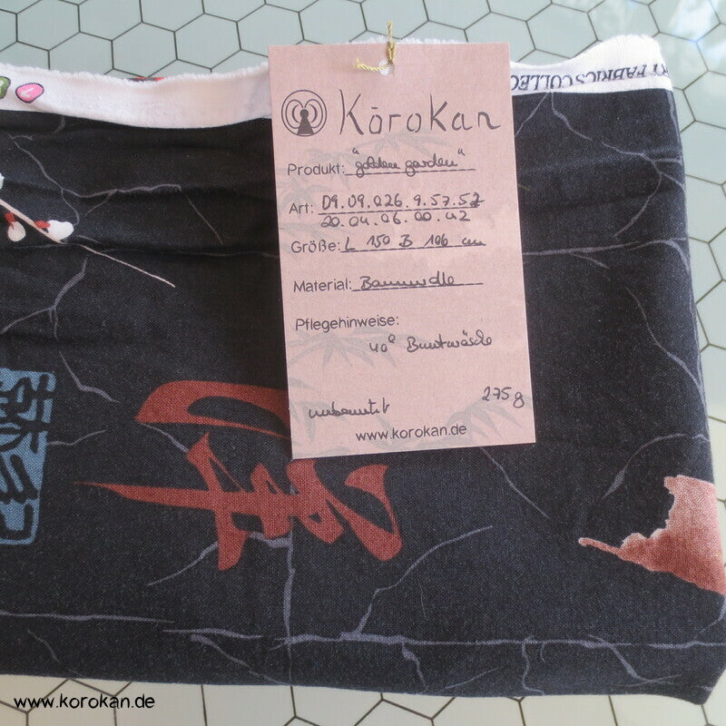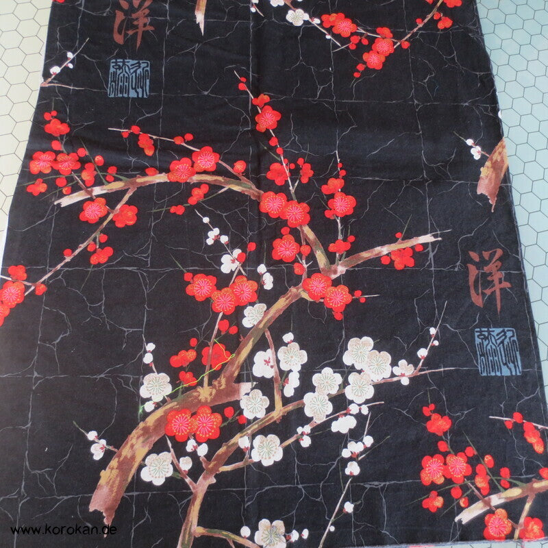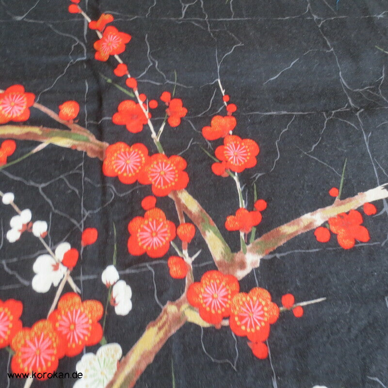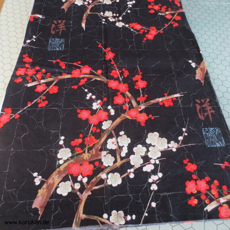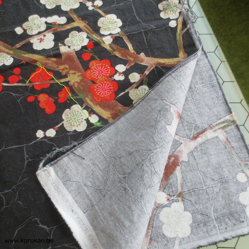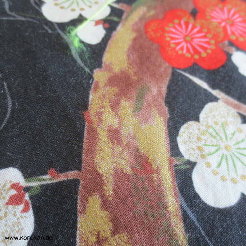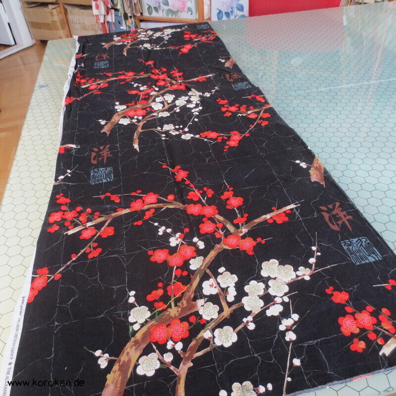 golden garden Baumwollstoff Umezweig auf schwarz mit Kanji