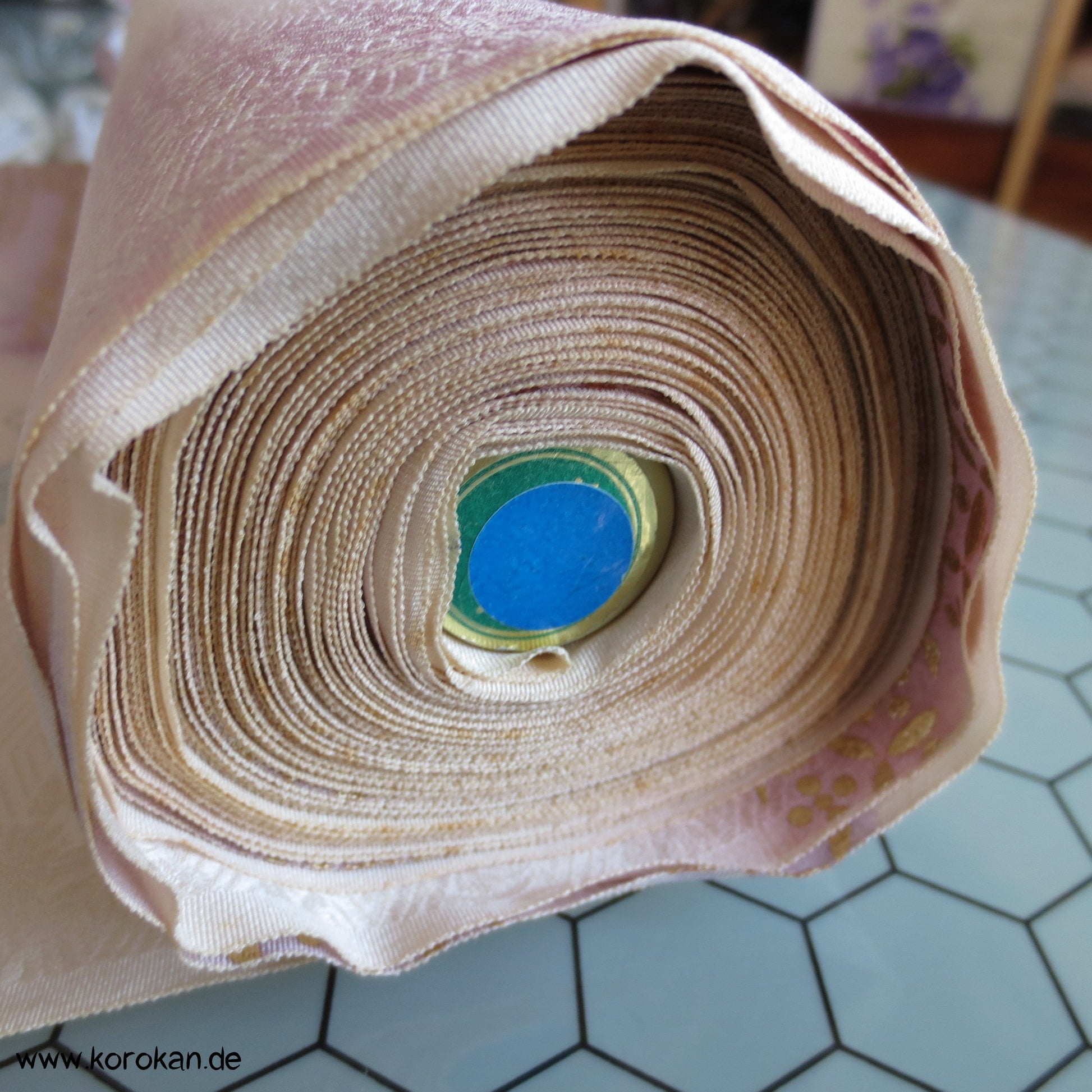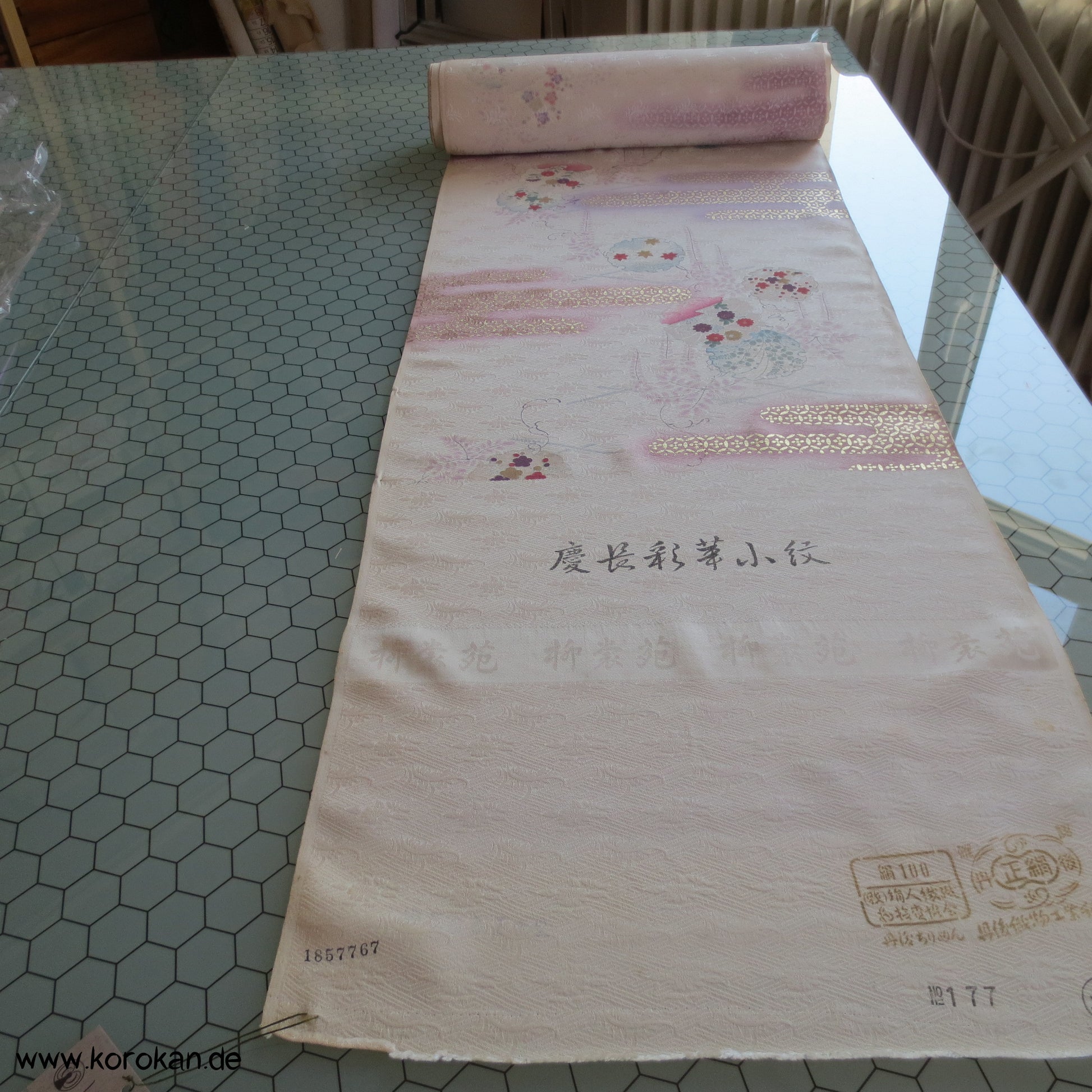 Vintage unbenutzter japanischer Stoffballen Damast Seide mit goldenen Musternebelschwaden und Muster Schneeflocken