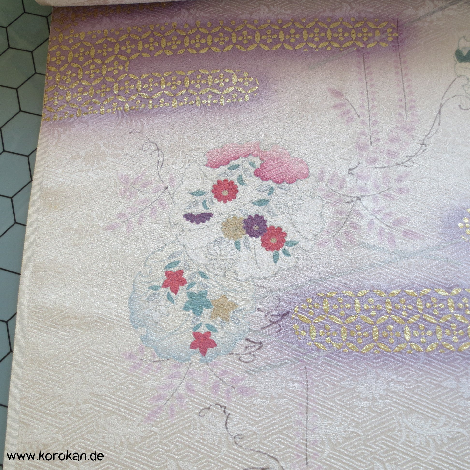 goldene Nebel und Schneeflocken Kimono Seidendamast