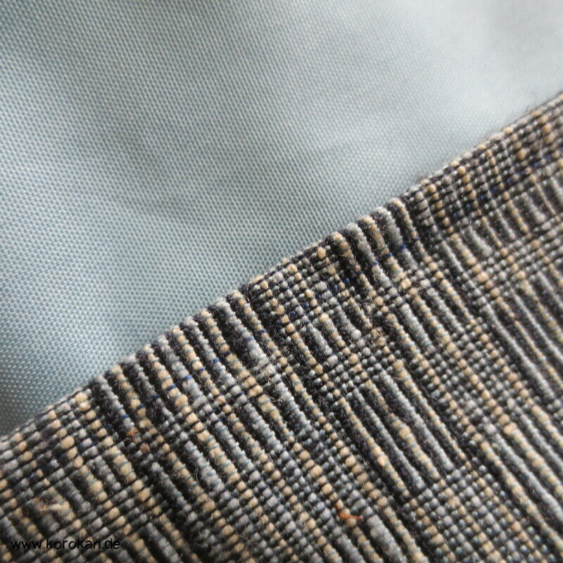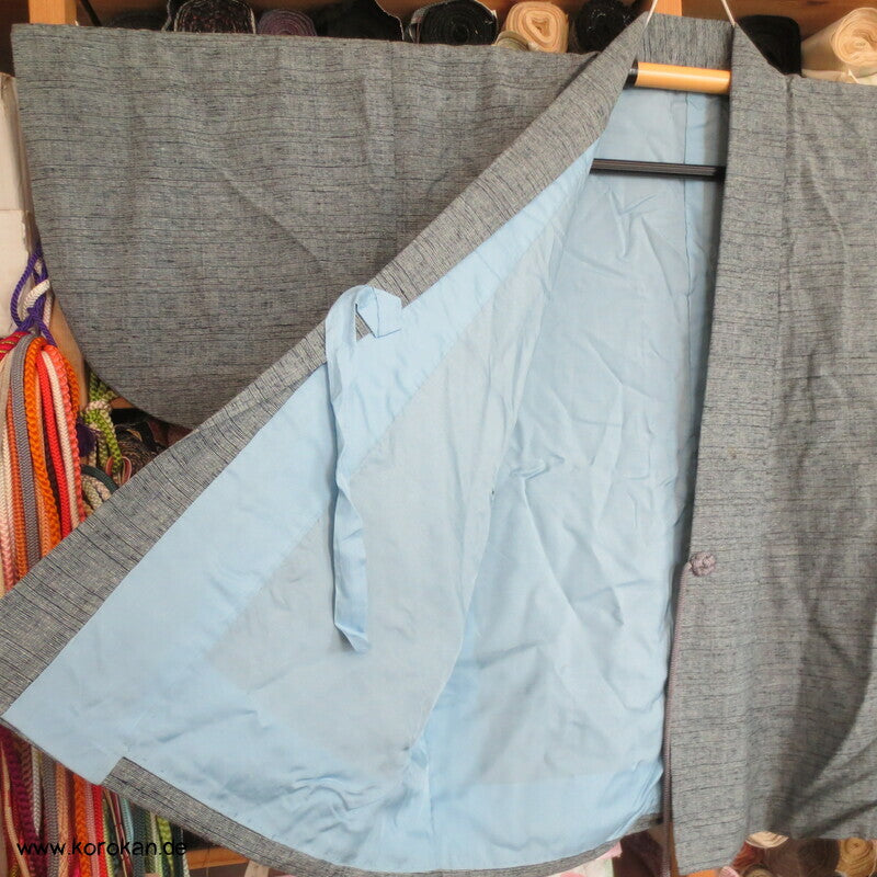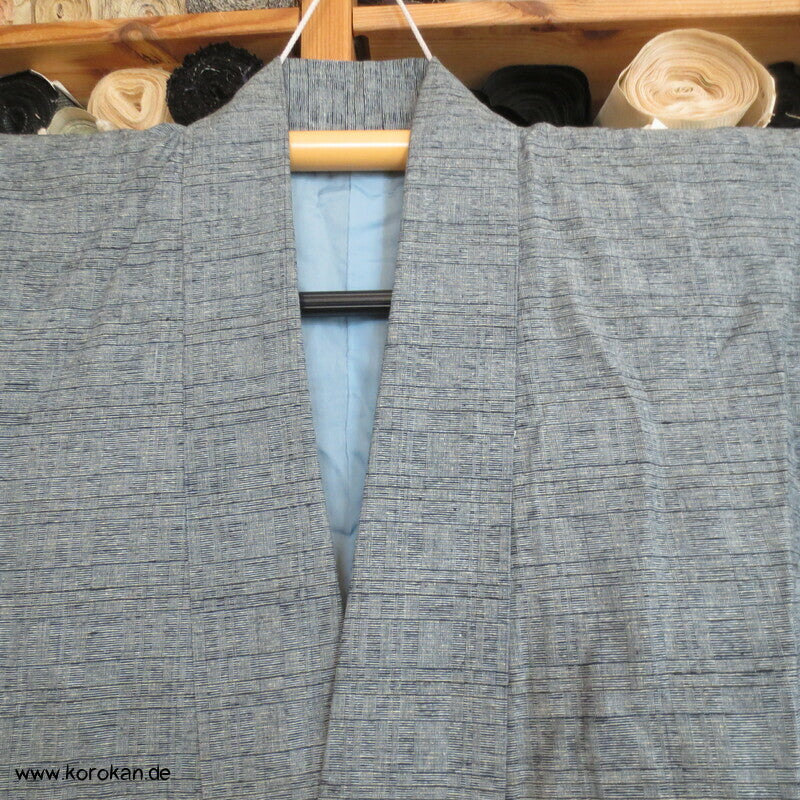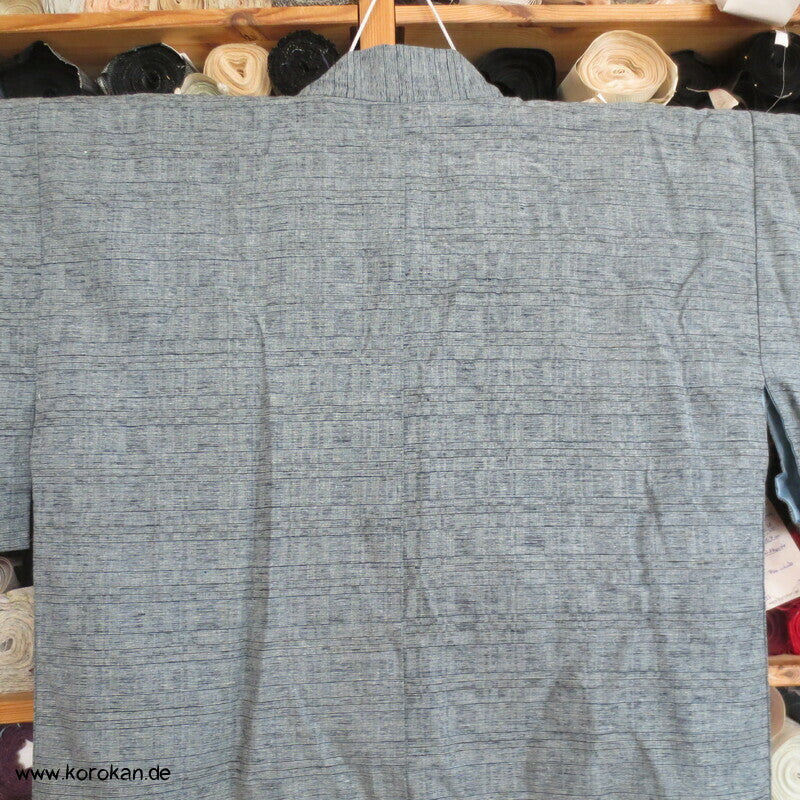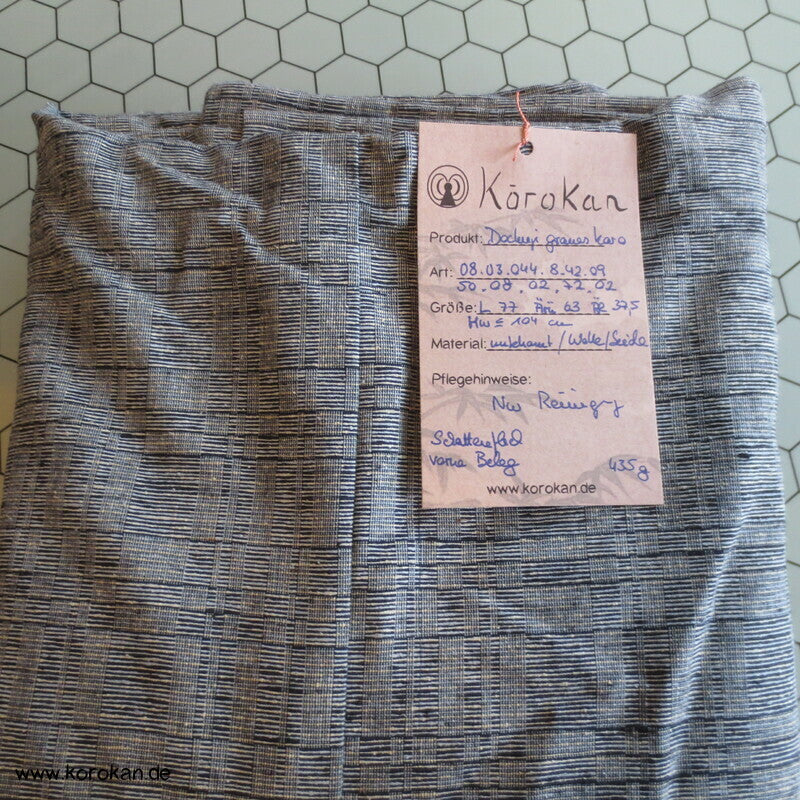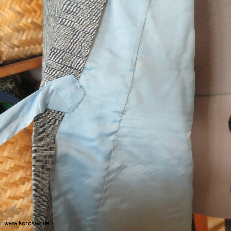 japanische Vintage Dochugi Kimono Jacke Wolle Seide Jacquard mit einem Karomuster, oberes Seidenfutter