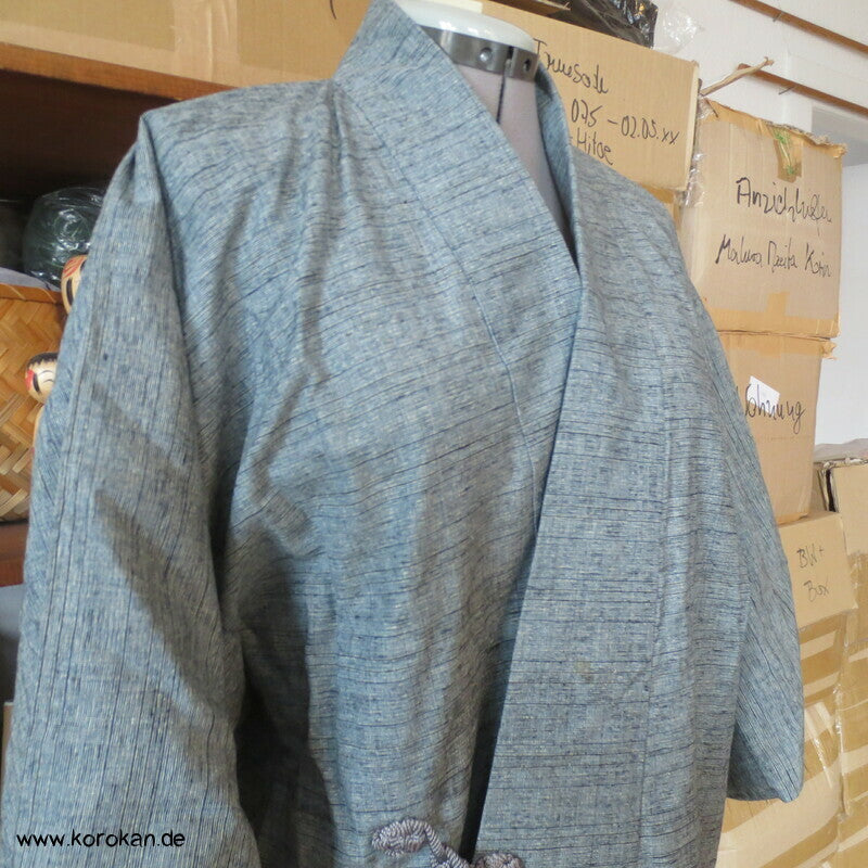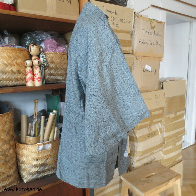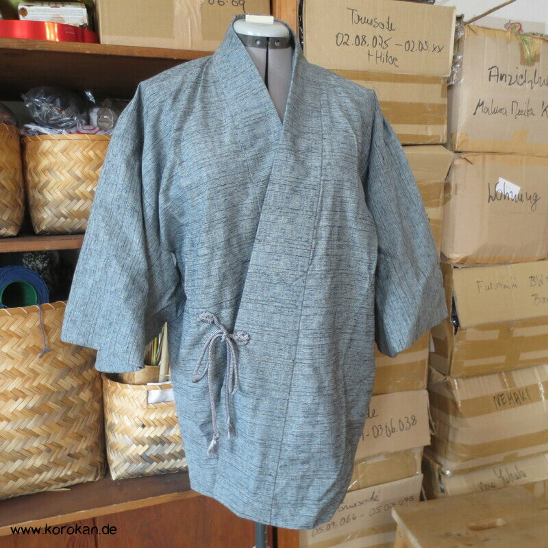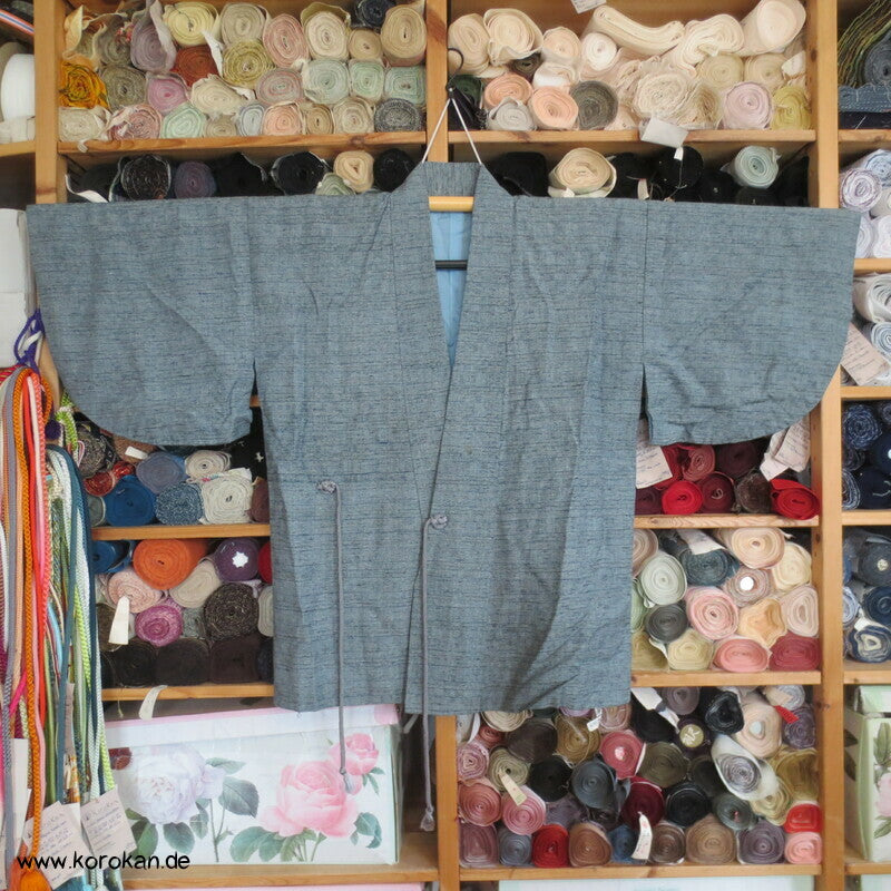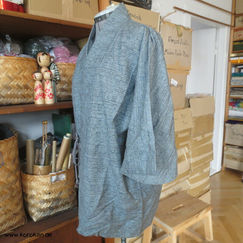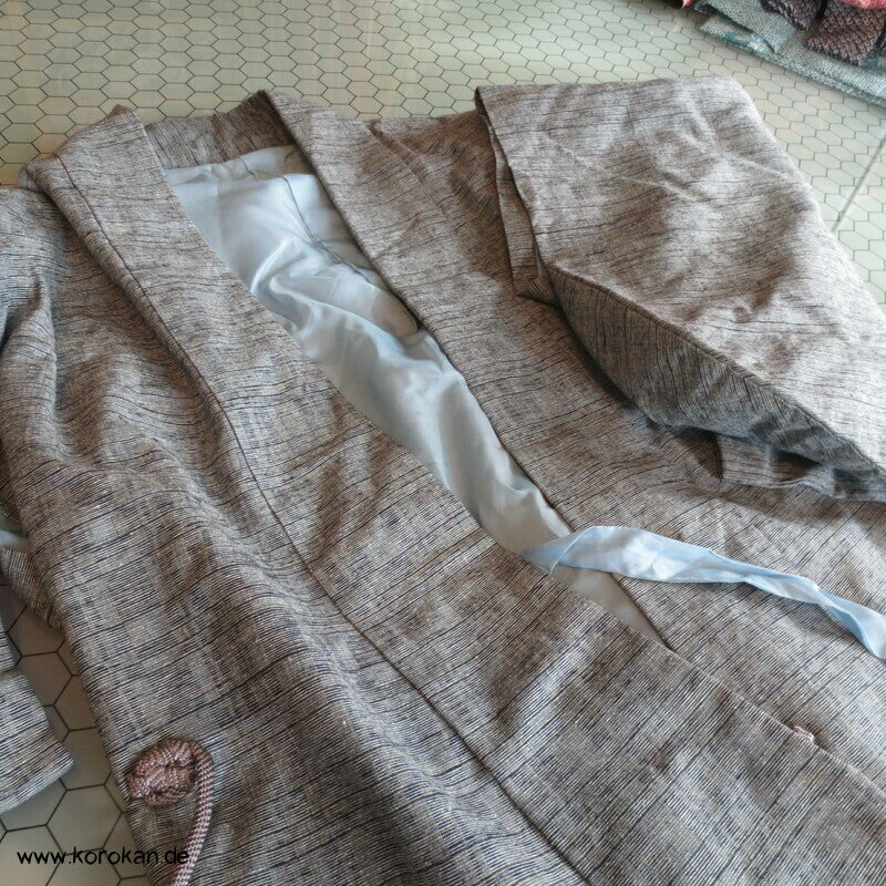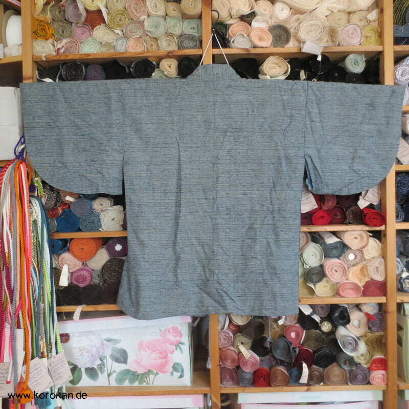 japanische Vintage Dochugi Kimono Jacke Wolle Seide Jacquard mit einem Karomuster, oberes Seidenfutter