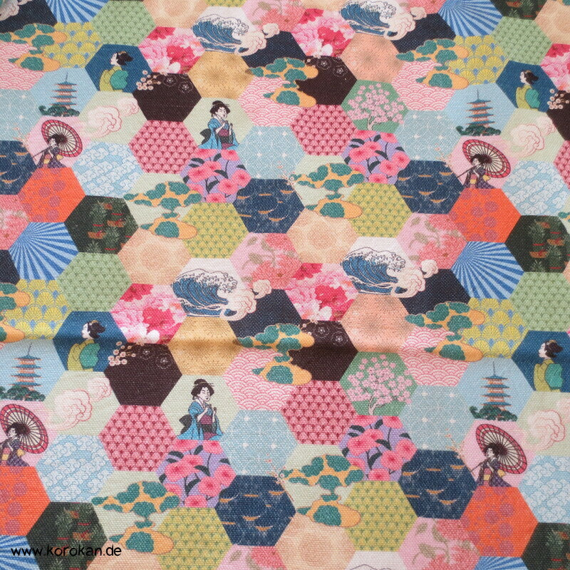 kleines Kikko Sechseckmuster mit lauter unterschiedlichen japanischen Motiven