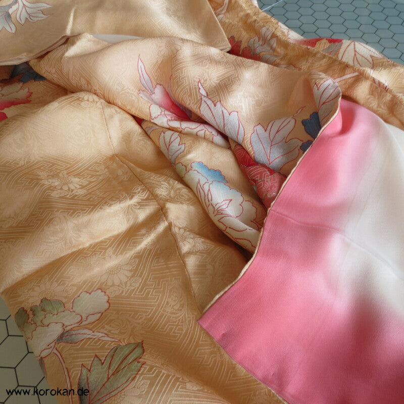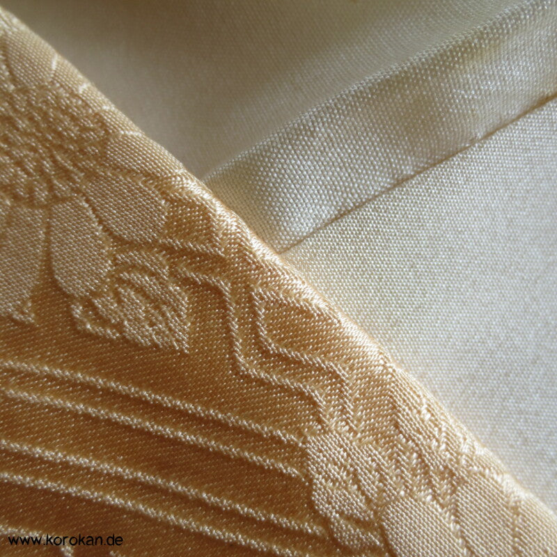 Oberes Futter helle Seide, unteres Hakkake Seidenfutter mit Bokashi Verlaufsrand.