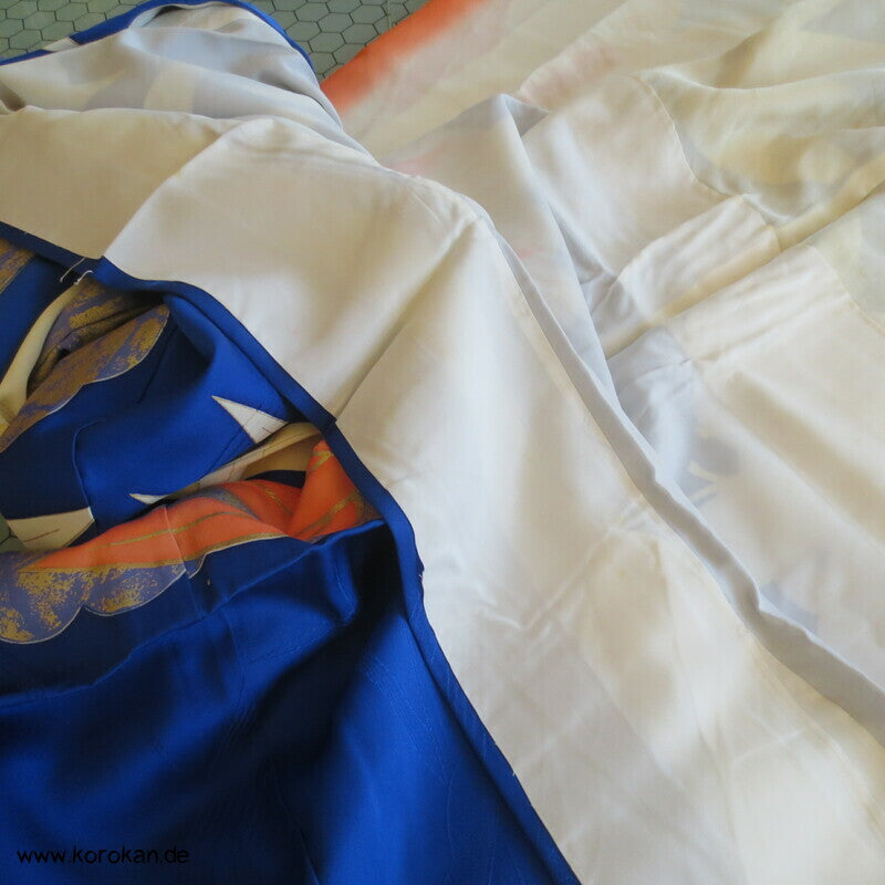Oberes Futter helle Seide, unteres Hakkake Seidenfutter mit Bokashi Verlaufsrand.