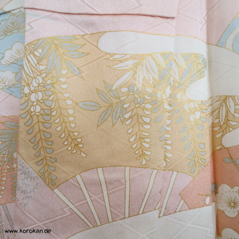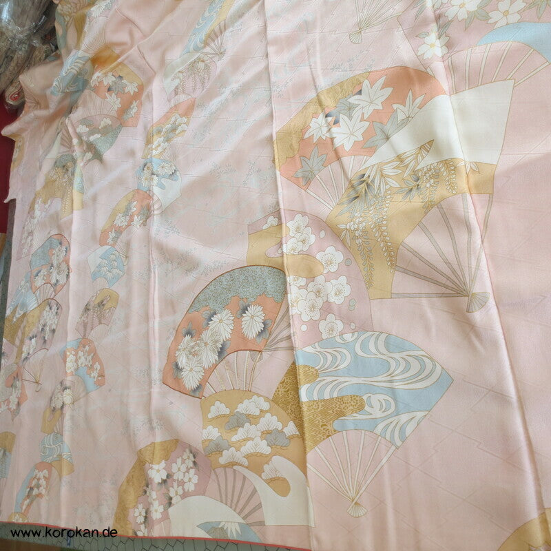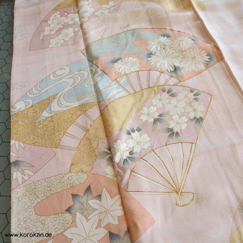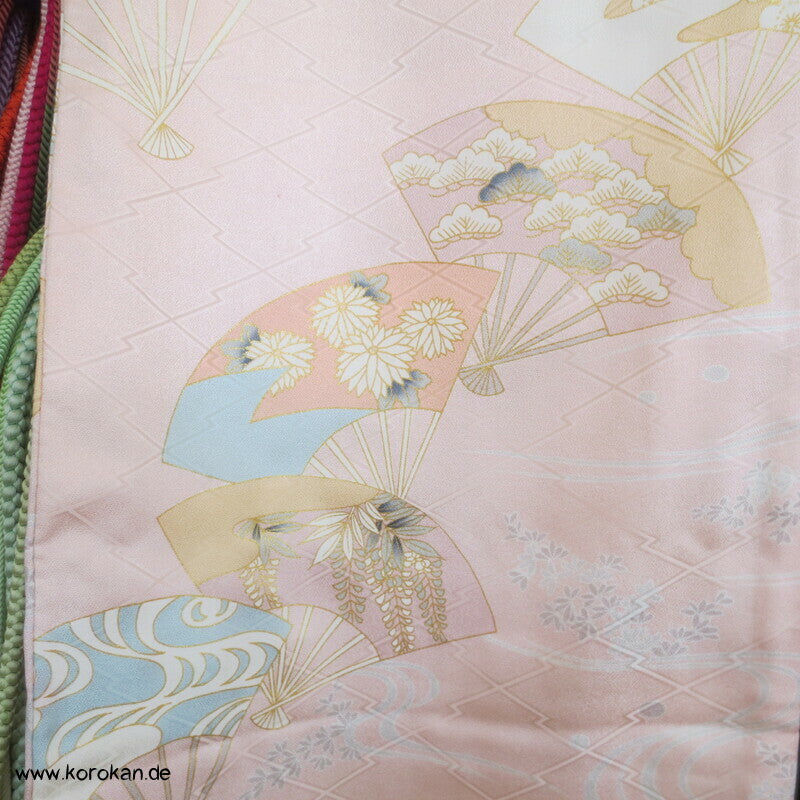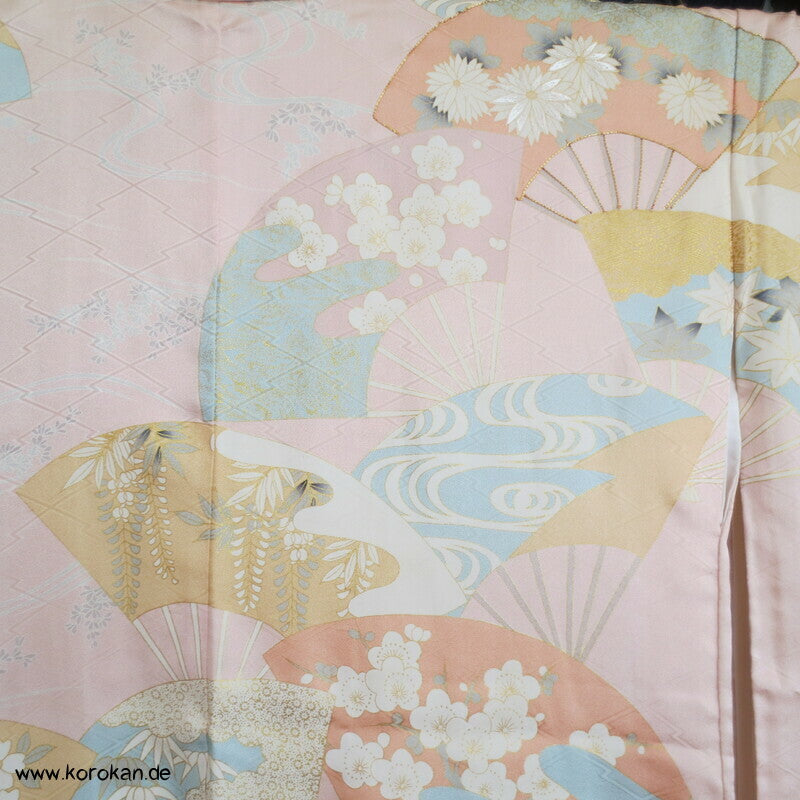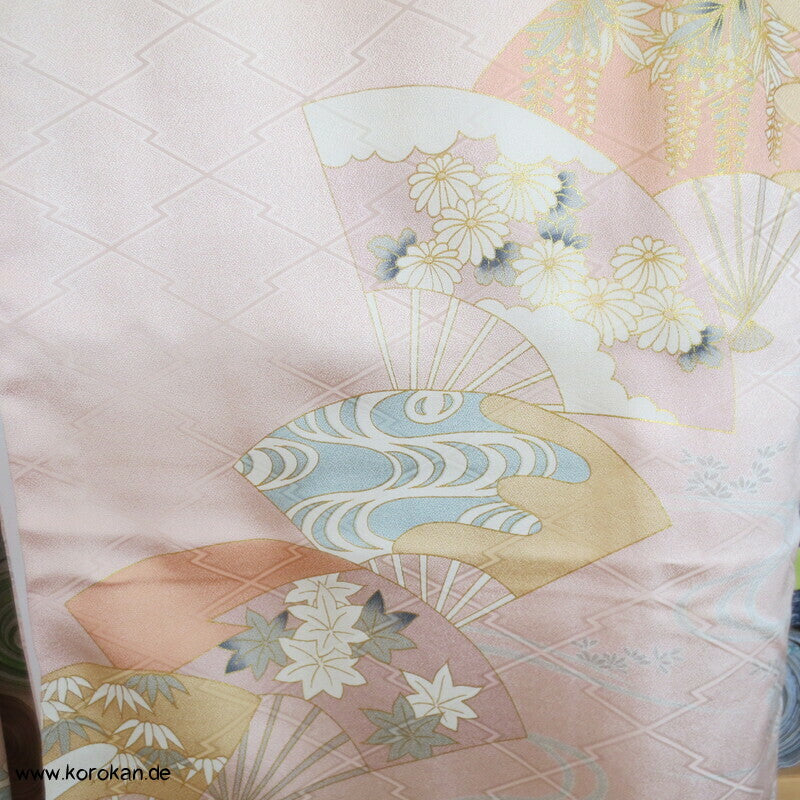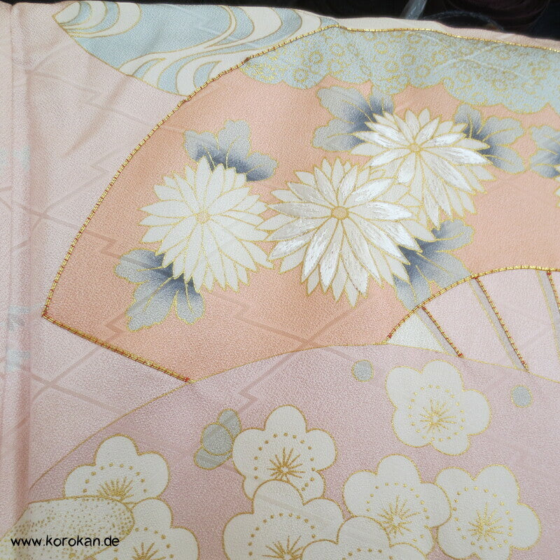 großer zarte Jigami Fächer Furisode, teilbestickt, pastellig