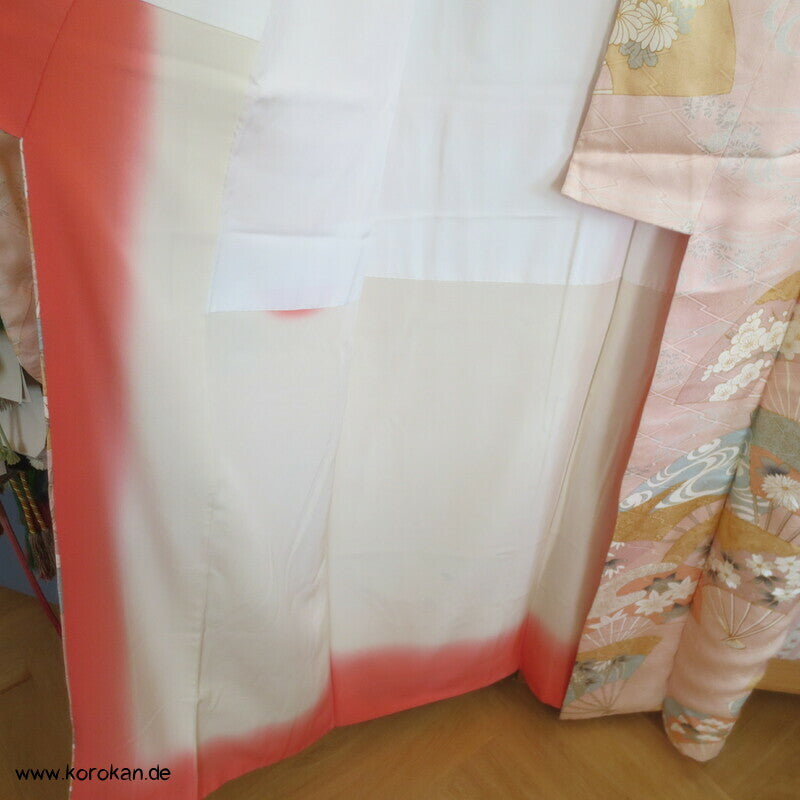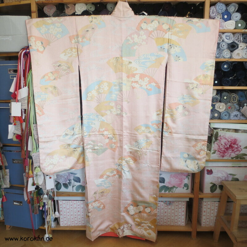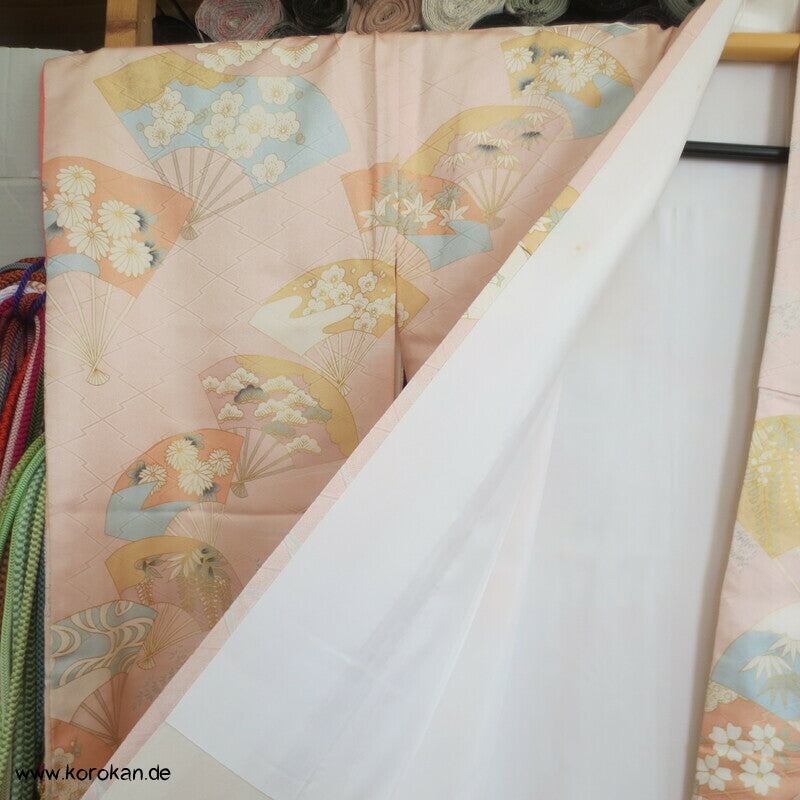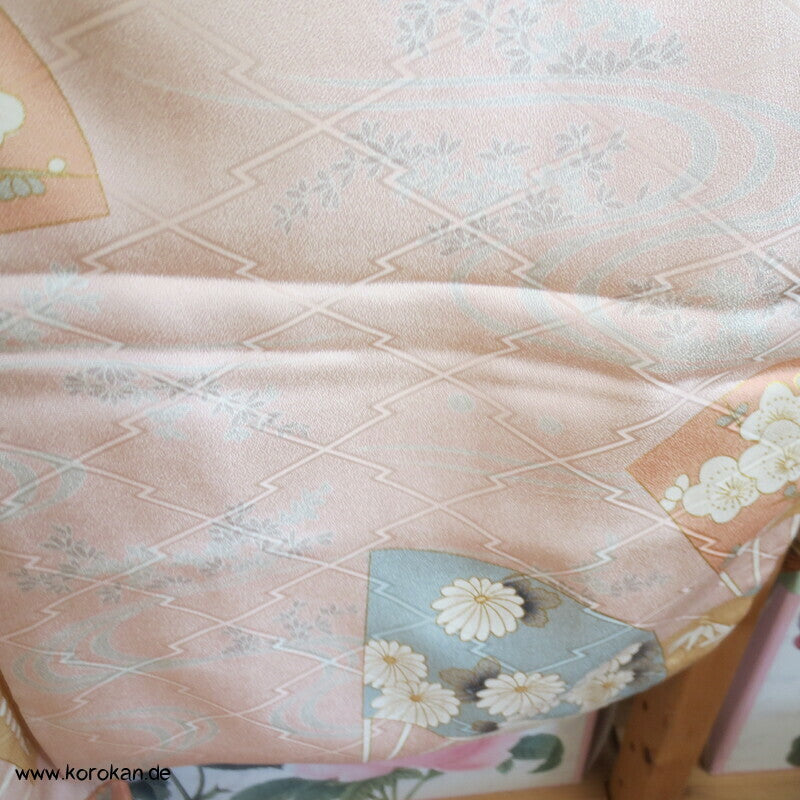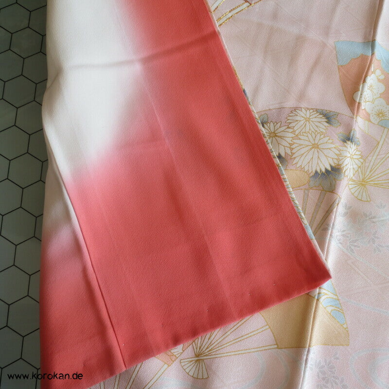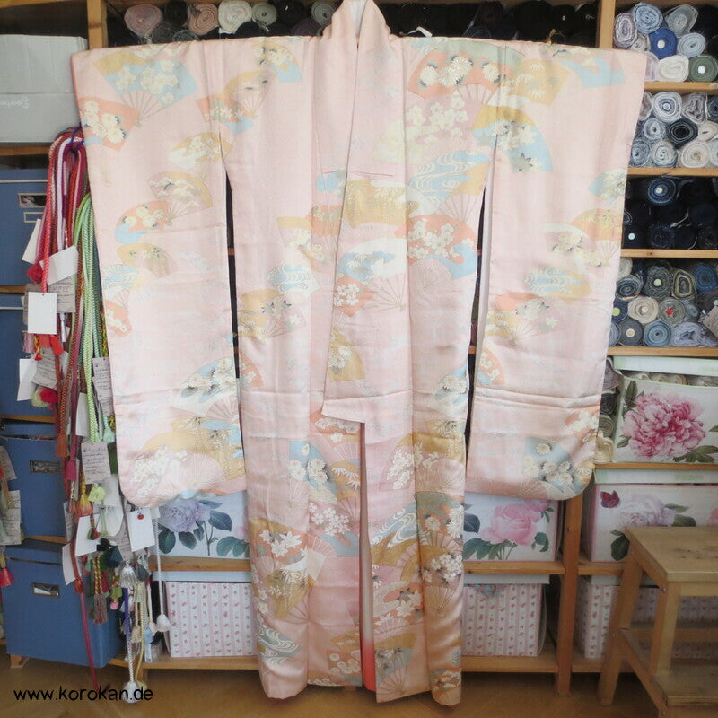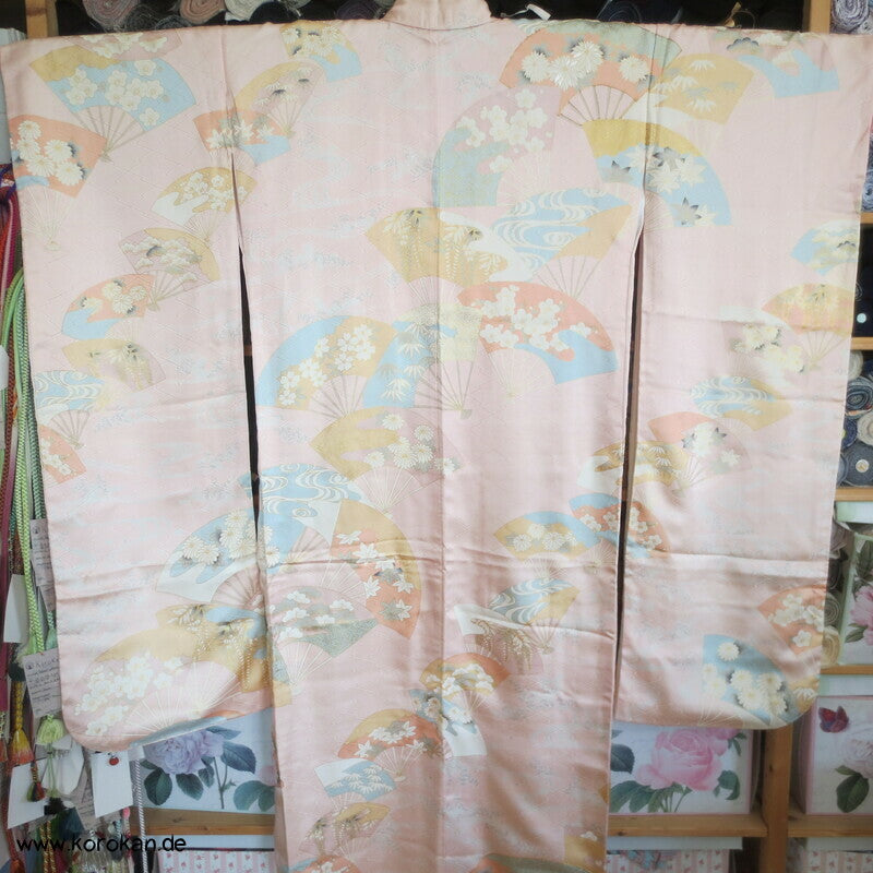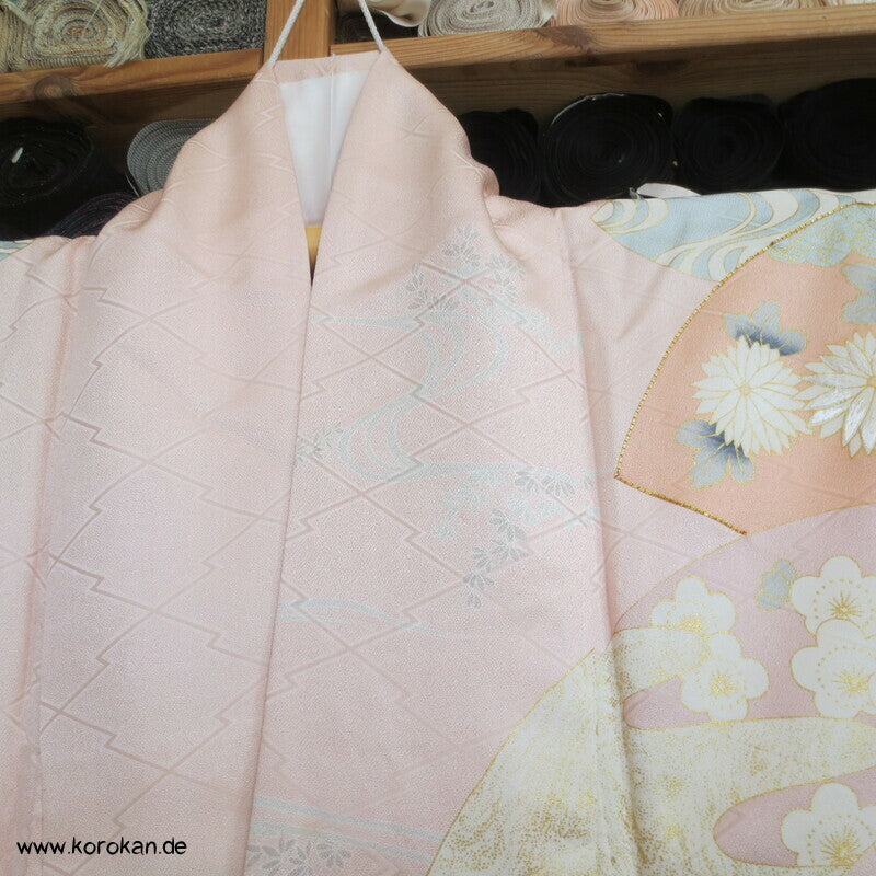 großer zarte Jigami Fächer Furisode, teilbestickt, pastellig