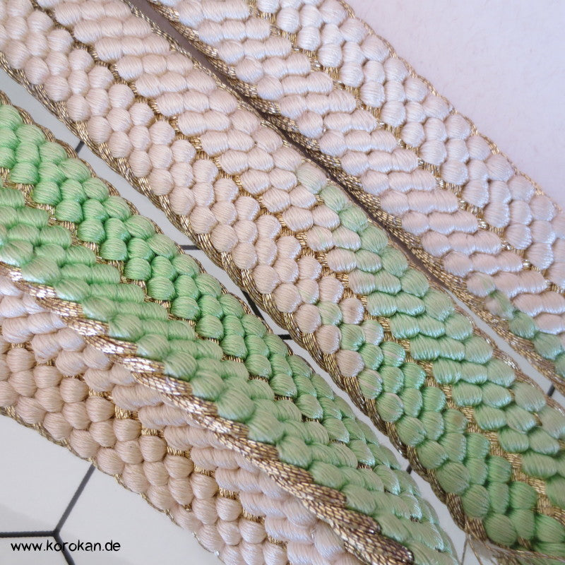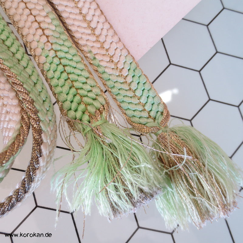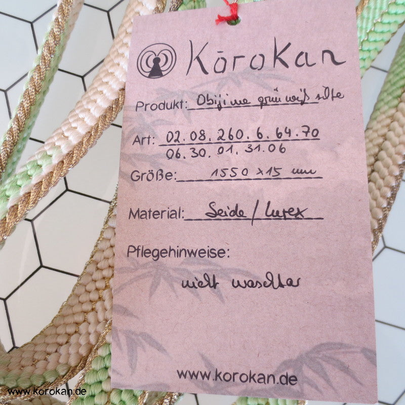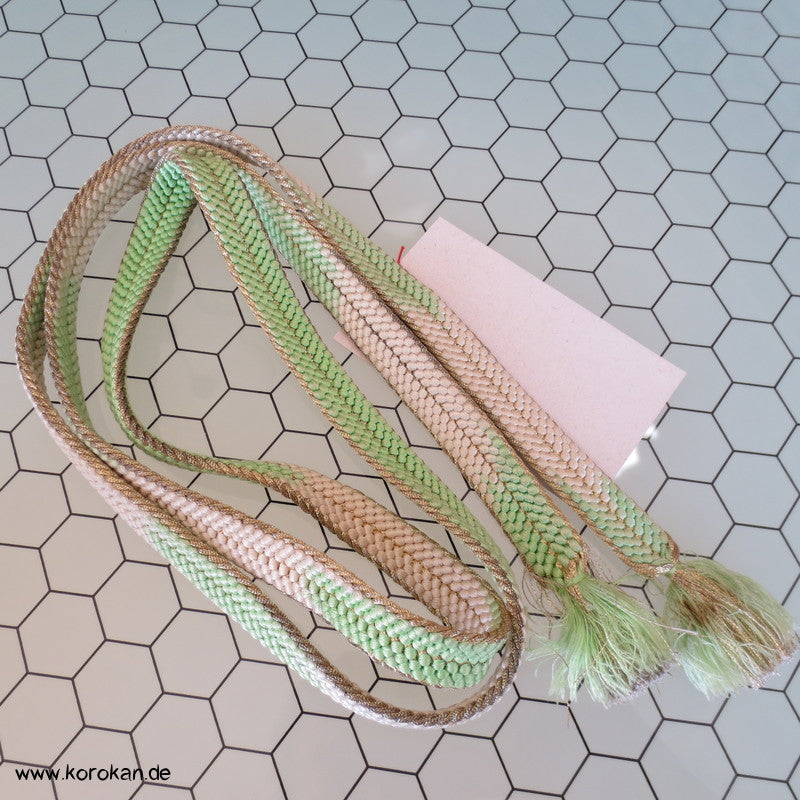 Vintage flacher Obijime jade weiß silberObijime, Seide / Lurex