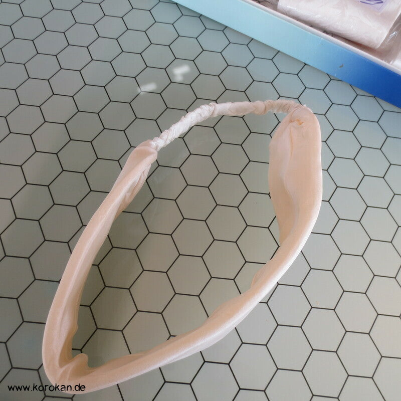 Vintage unbenutztes Haarband aus Seide natur, dick gepolstert mit Gummizug von Ideen in Stoff für die Seidenmalerei - auf einer Seite mit Verfärbung - muss also erst gefärbt oder bemalt werden.