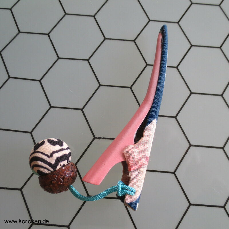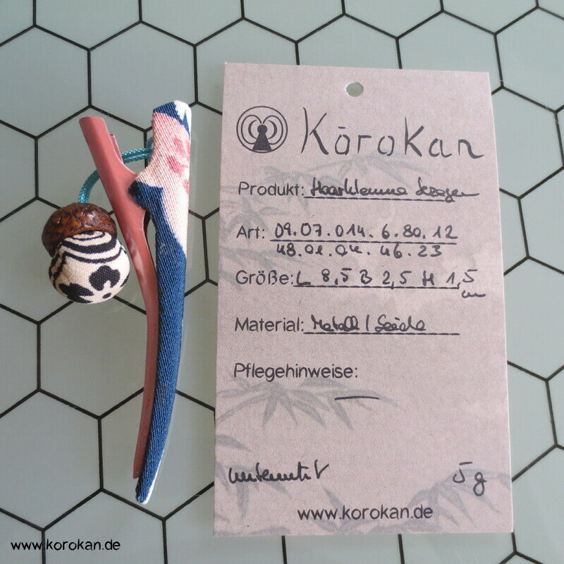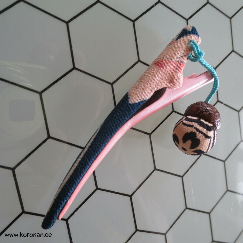 Vintage handgemachte Haarklemme Metall stoffbezogen mit Anhänger für japanische Haartrachten.