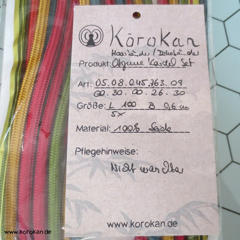 5 'er Pack Vintage unbenutzt originalverpackte Seiden Kordel Obijime, dunkelbunt