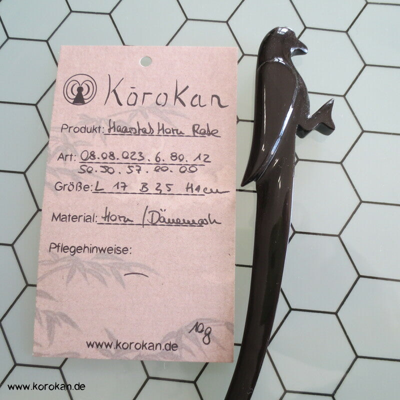 Vintage Haarstab Rabe aus dänischem schwarzem Echt Horn für japanische Haartrachten.