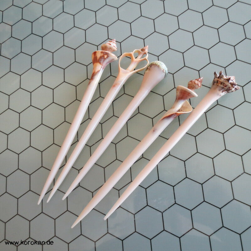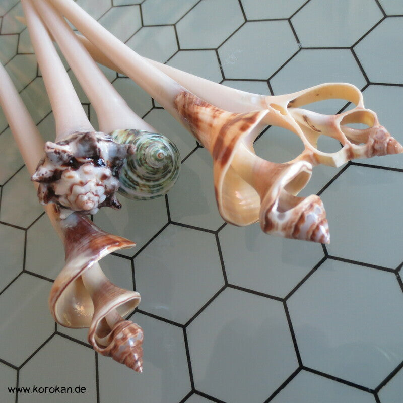 handgemachter Haarstab Muschel mit Muschelkalkstab für japanische Haartrachten.