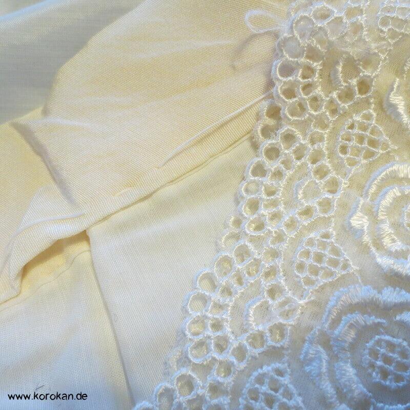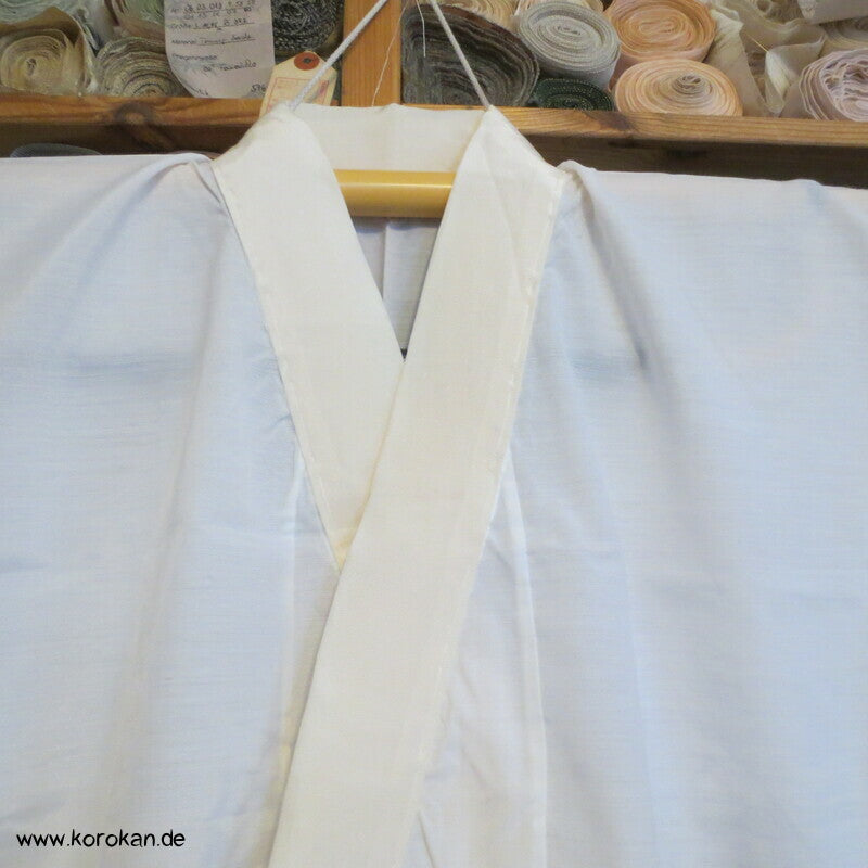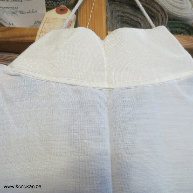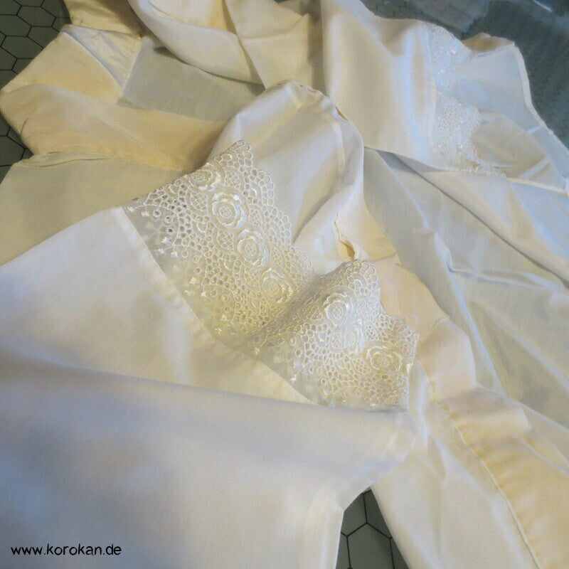 Vintage Hadajuban Kimono Unterhemd mit Spitzenärmeln und Han Eri, Baumwollkorpus mit Stickereispitzen Ärmeln und angenähten Han Eri aus Seiden Crepe - gewaschen, sauber, leicher Taft, Tragbar.