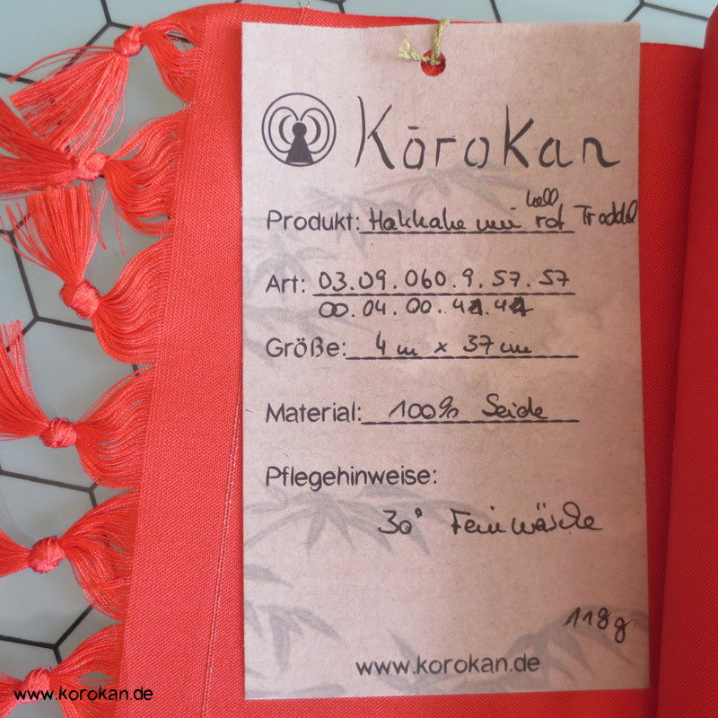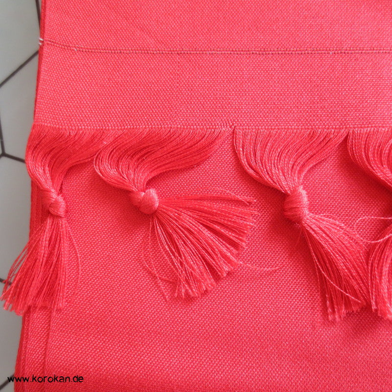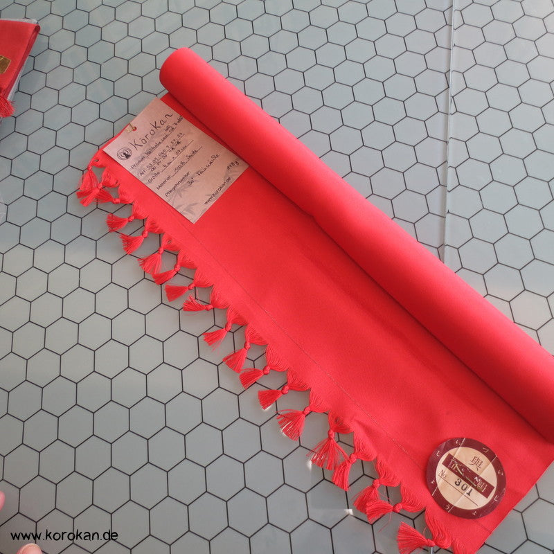 Vintage unbenutzter Hakkake Seiden Honan Stoff in mattrot - mit Troddeln
