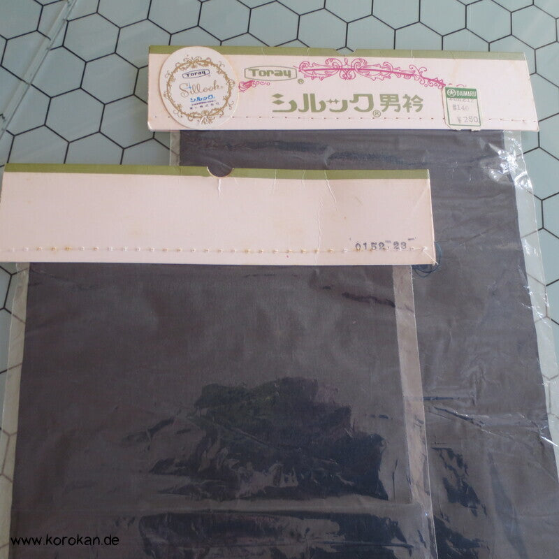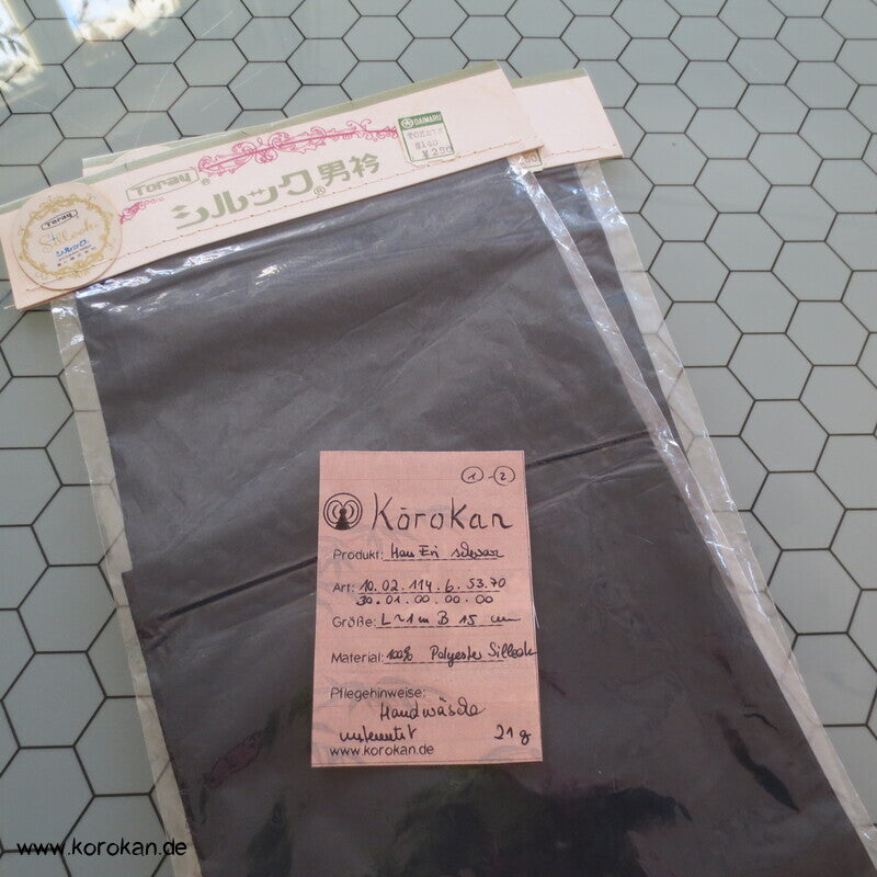 Vintage unbenutzter originalverpackter Han Eri Kragenstreifen aus feiner schwarzer japanischer Crepe Kunst Seide
