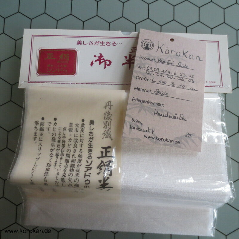 Vintage unbenutzter originalverpackter Han Eri Kragenstreifen aus feiner weißer japanischer Crepe Seide