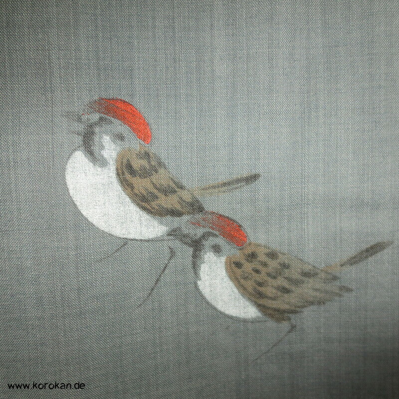 handgemalte Spatzen im Bambus Männer Juban Hitoe Unterkimono