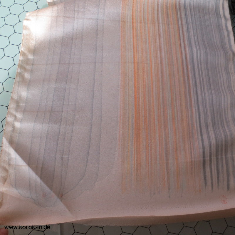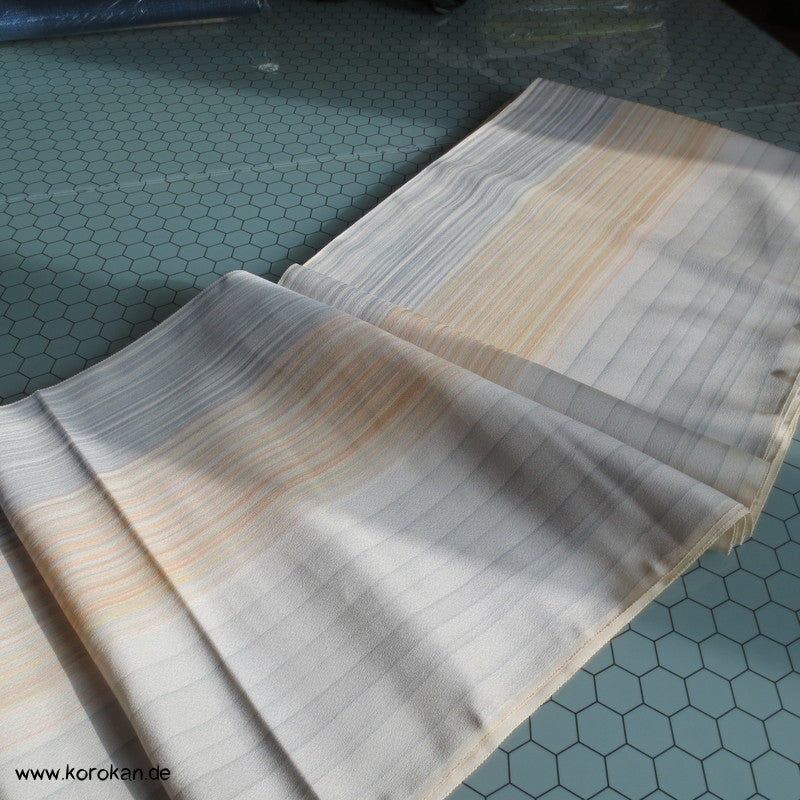Vintage unbenutzte Tanmono Stoffrolle Seidencrepesatin zarte handgemalte Längsstreifen