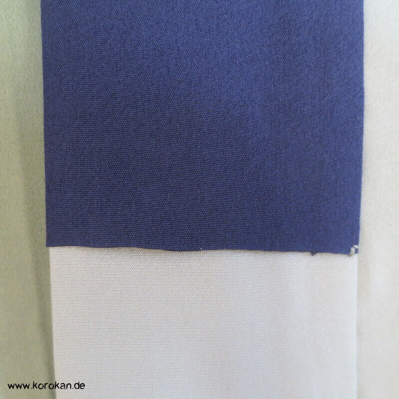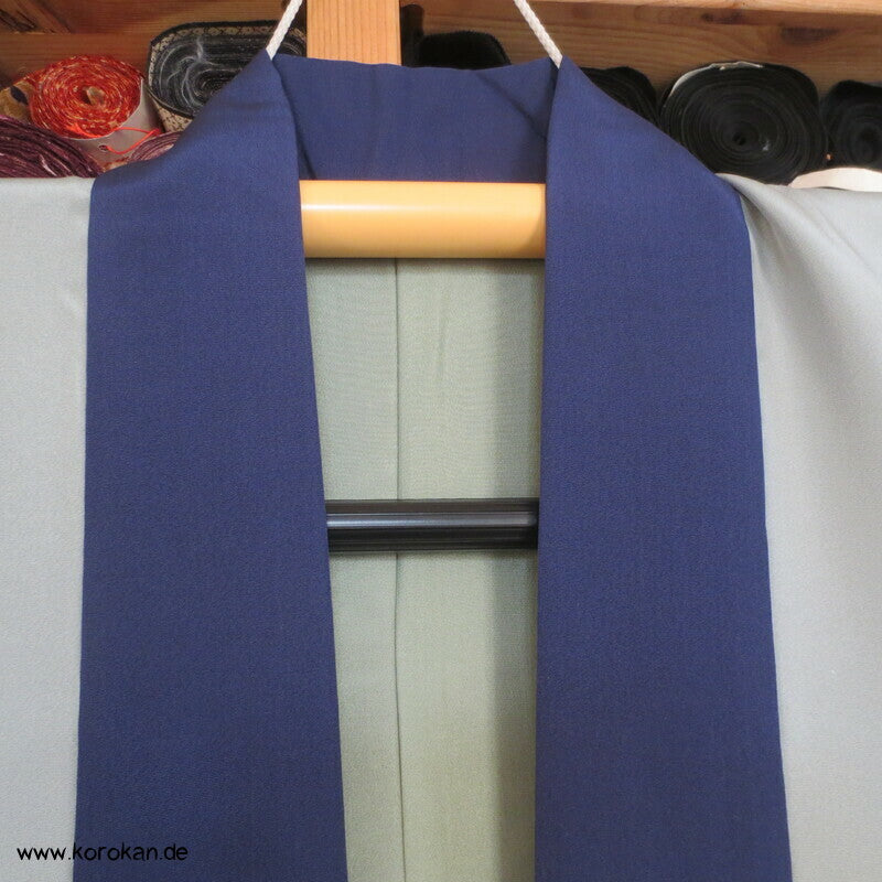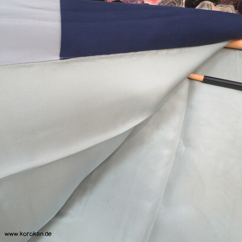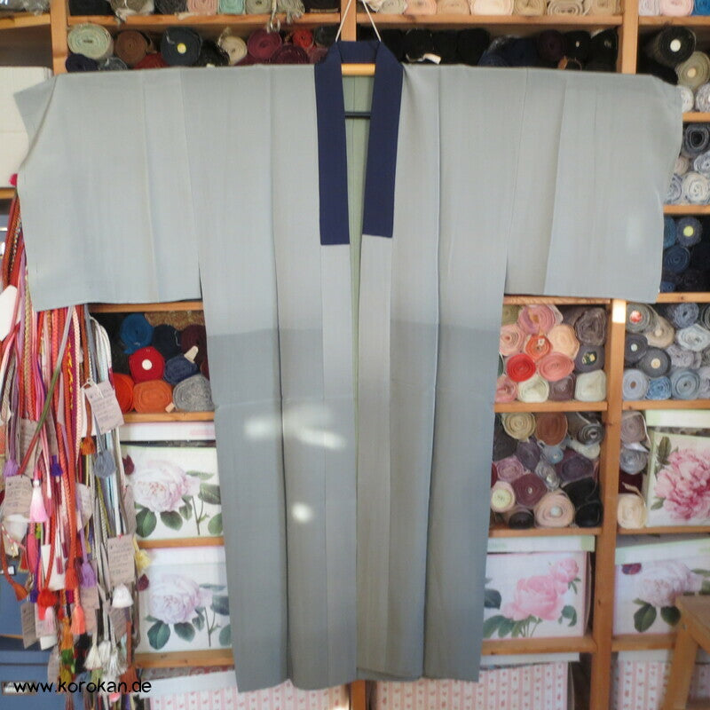 Vintage Männer Juban Unter Kimono, Farbverlauf Seidencrepe mit handgemaltem Bambus großem Motiv im Rücken, Künstlersignatur, voll gefüttert mit blassblauer Seide und einem dunkelblauen geschlossen angenähten Han Eri Ripskragen.