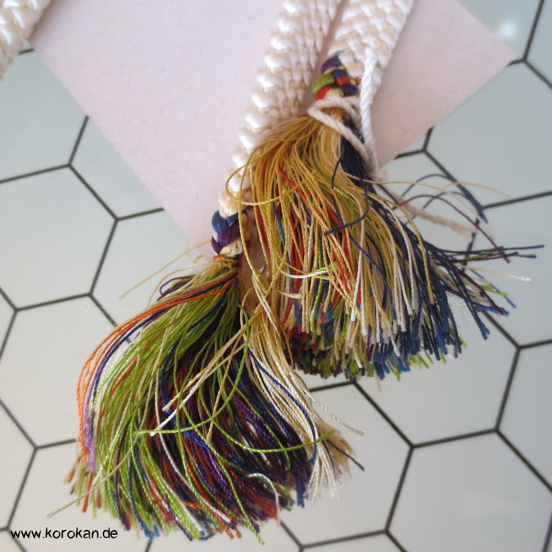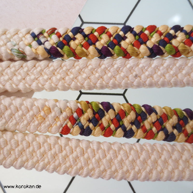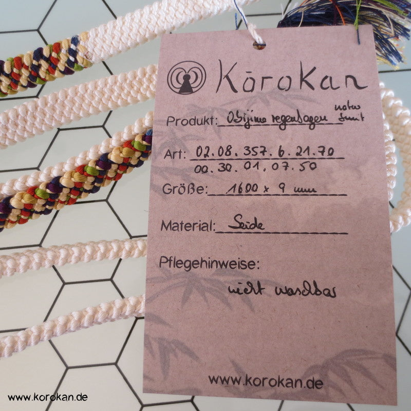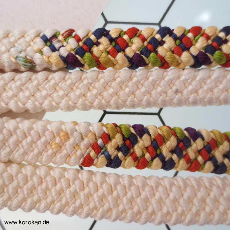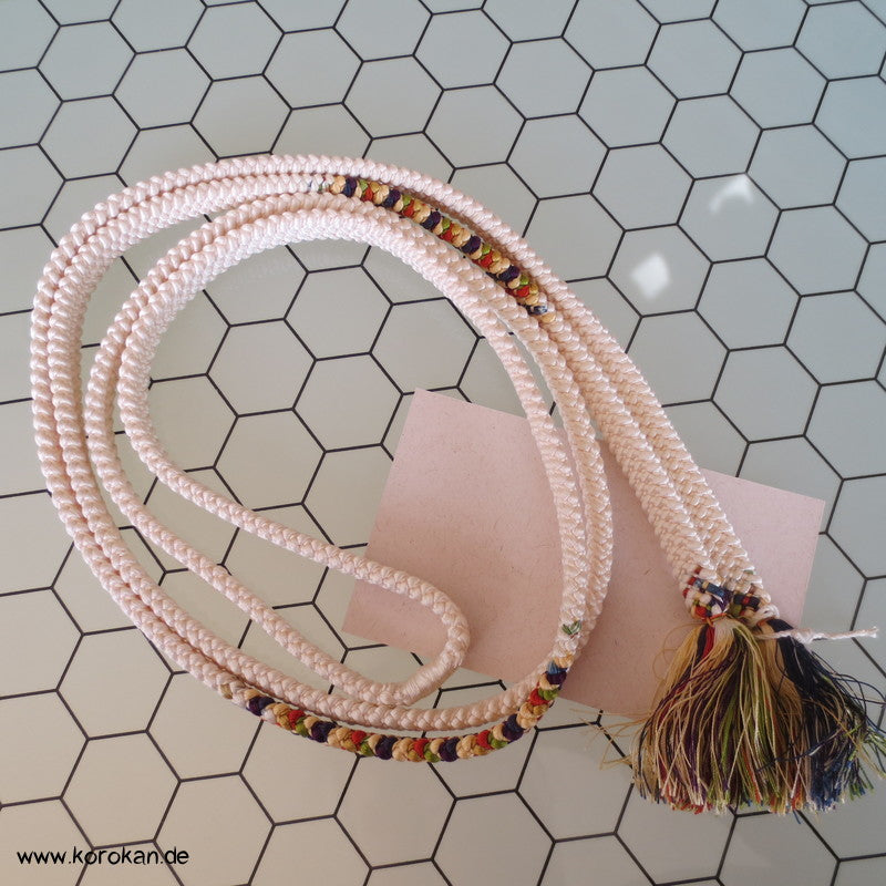 Vintage japanischer Flecht Seiden Obijime natur mit buntem Abschnitt Farbverlauf