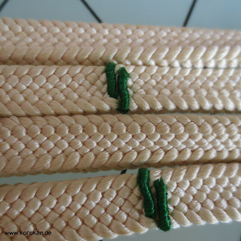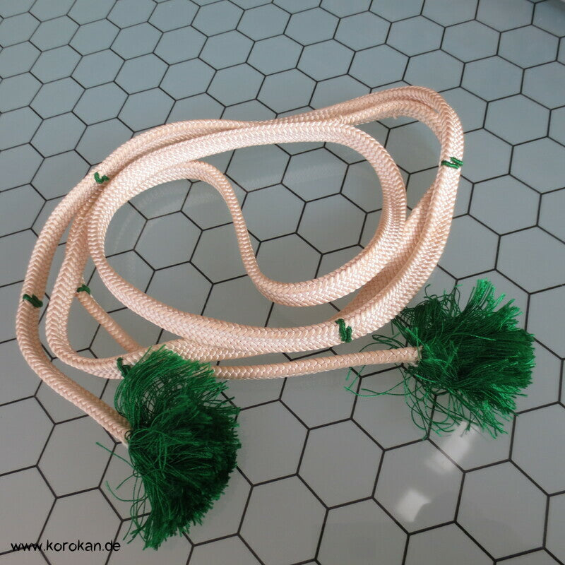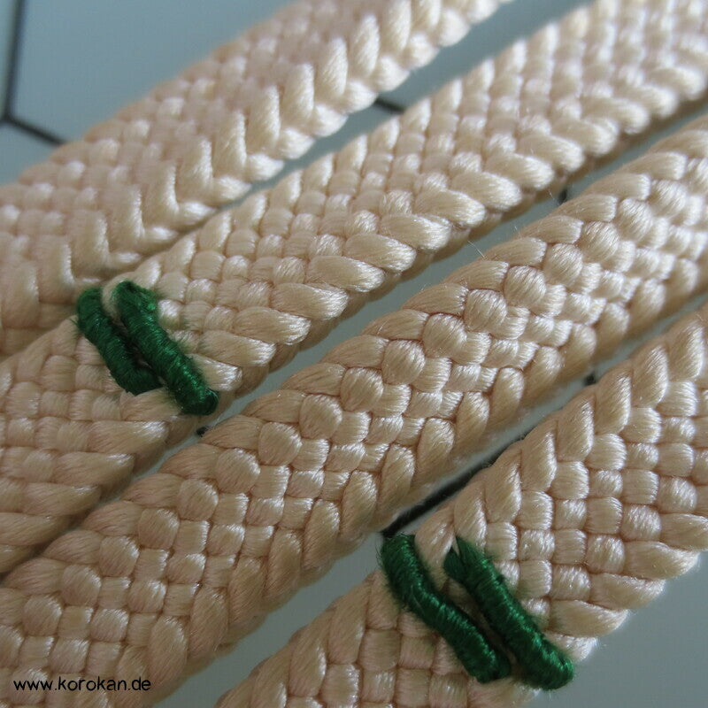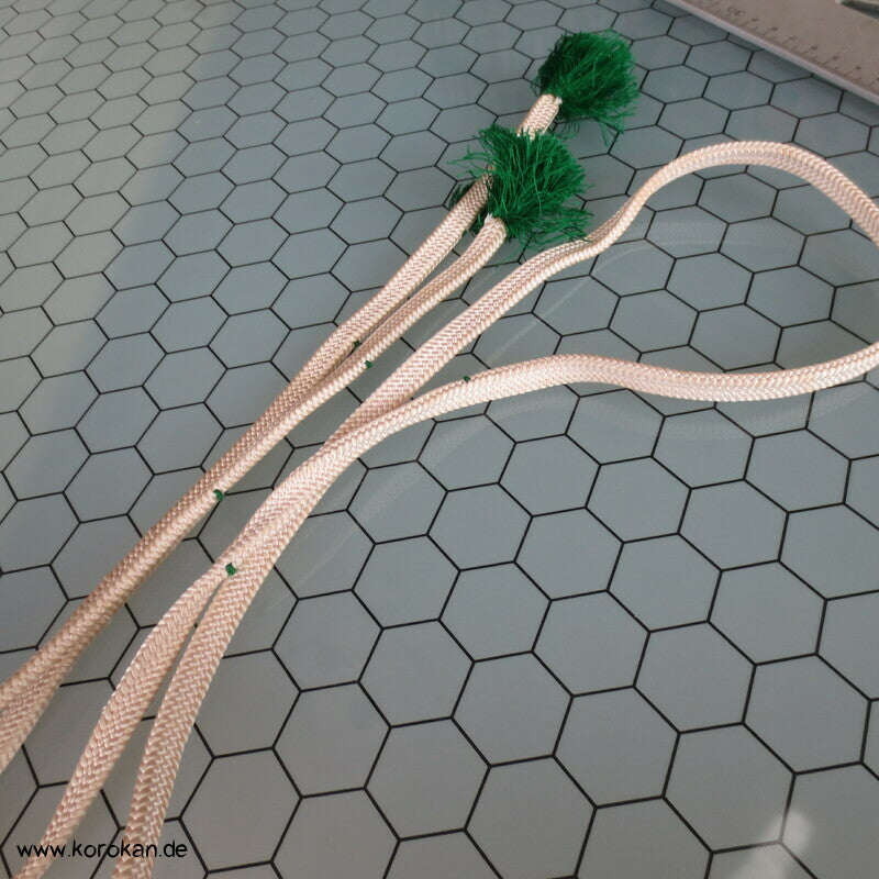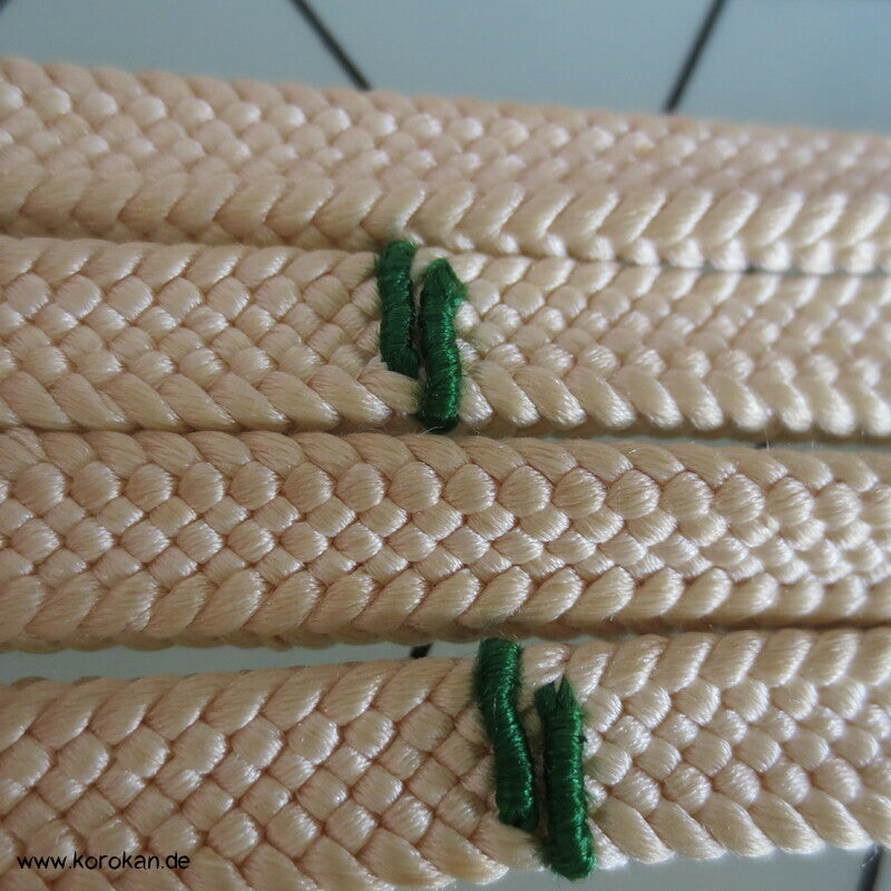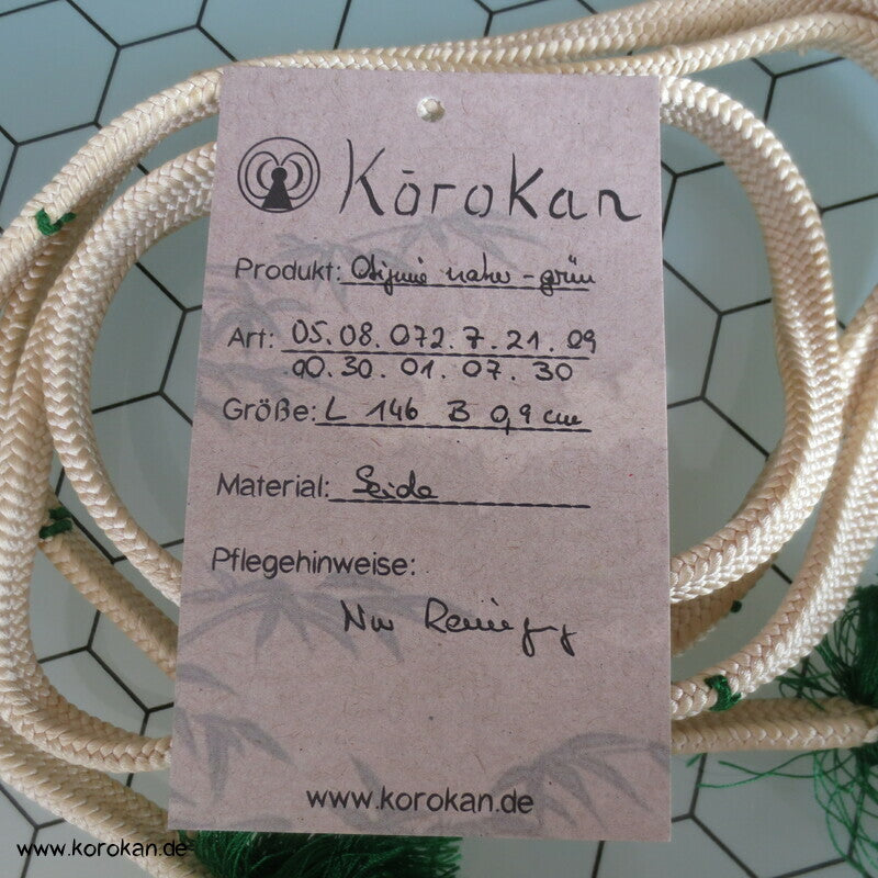 japanischer Flecht Seiden Obijime natur mit grünen Streifen und Troddeln