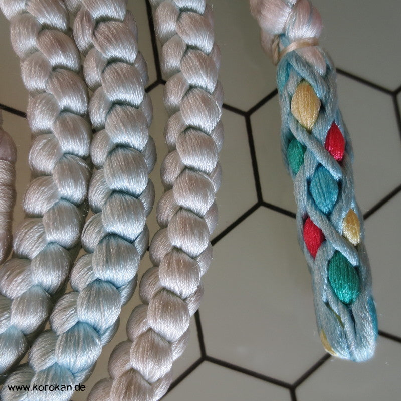 Vintage Seiden Kordel Obijime, pink bunter Farbverlauf, Teilung, ohne Troddeln mit runden Enden
