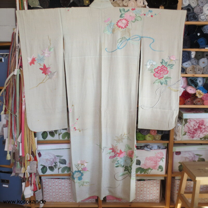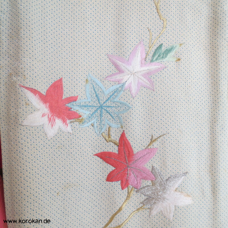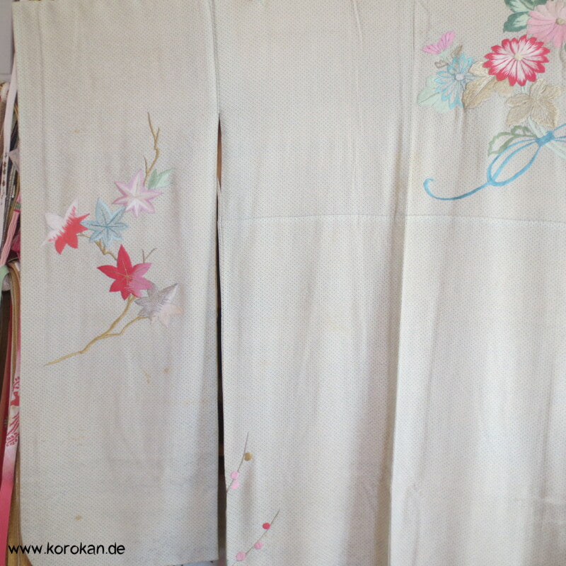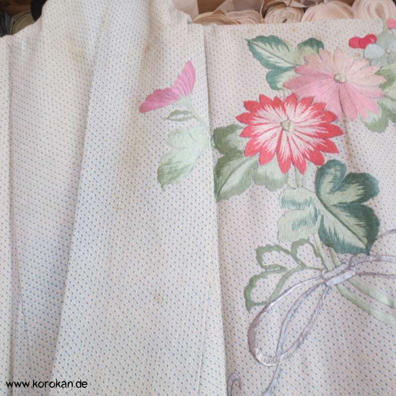 hellblauer Kanoko Druck, Stickereien Furisode Seiden Kimono
