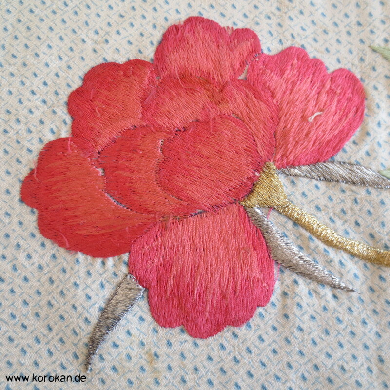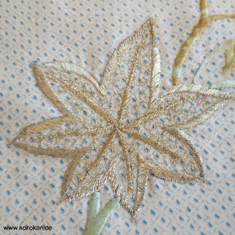 Oberes Futter helle Seide, unteres Hakkake Seidenfutter mit Bokashi Verlaufsrand.