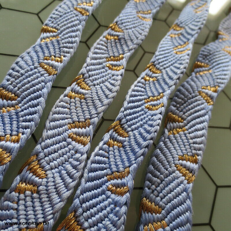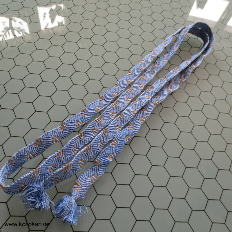 Vintage flacher Obijime hellblaugoldnes Muschelwellenmuster Obijime, Seide / Lurex geflochten