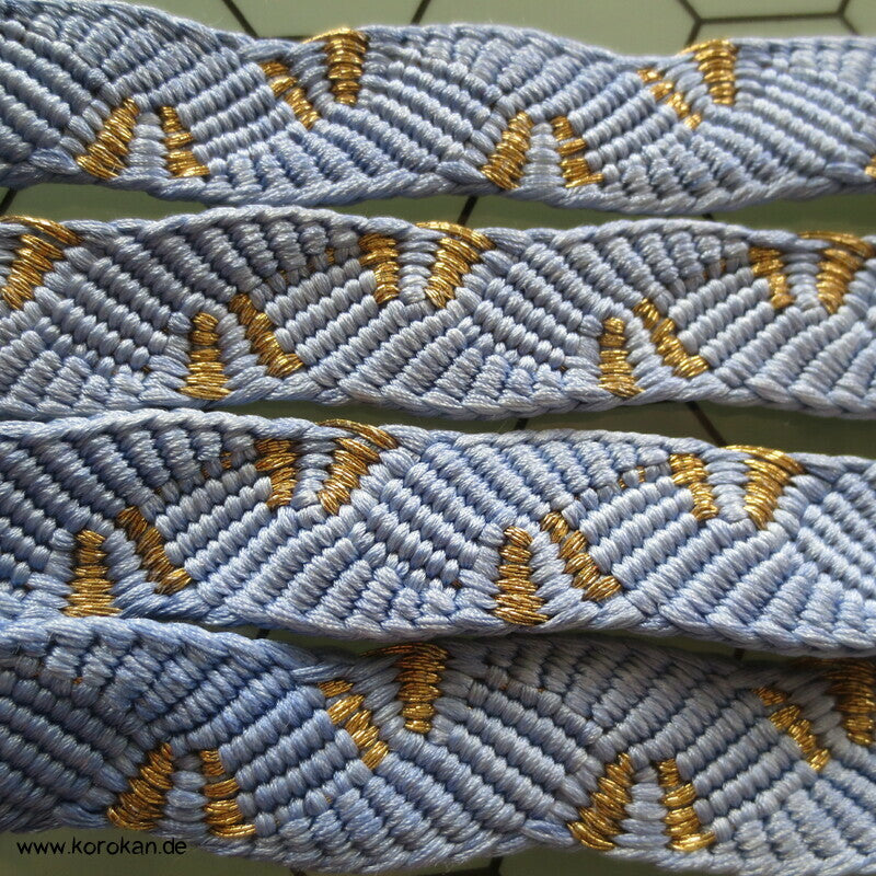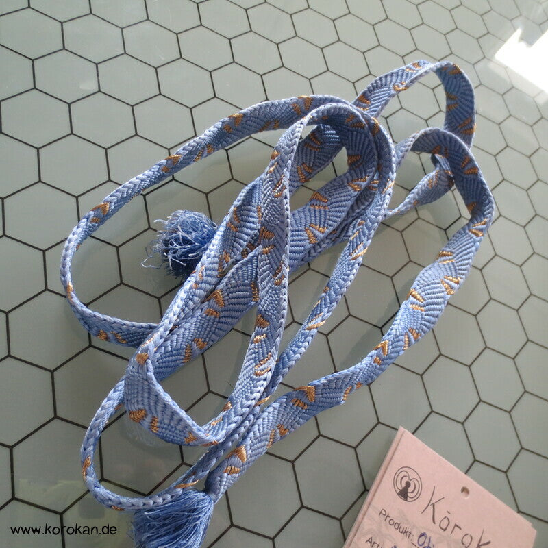 hellblaugoldnes Muschelwellenmuster Obijime, Seide / Lurex