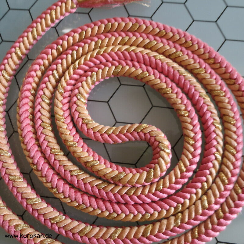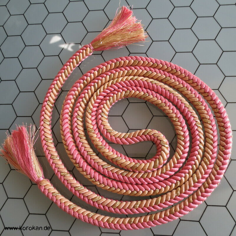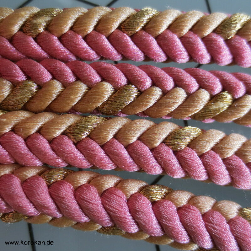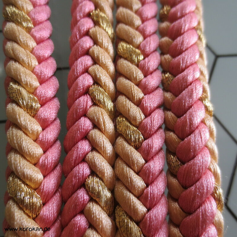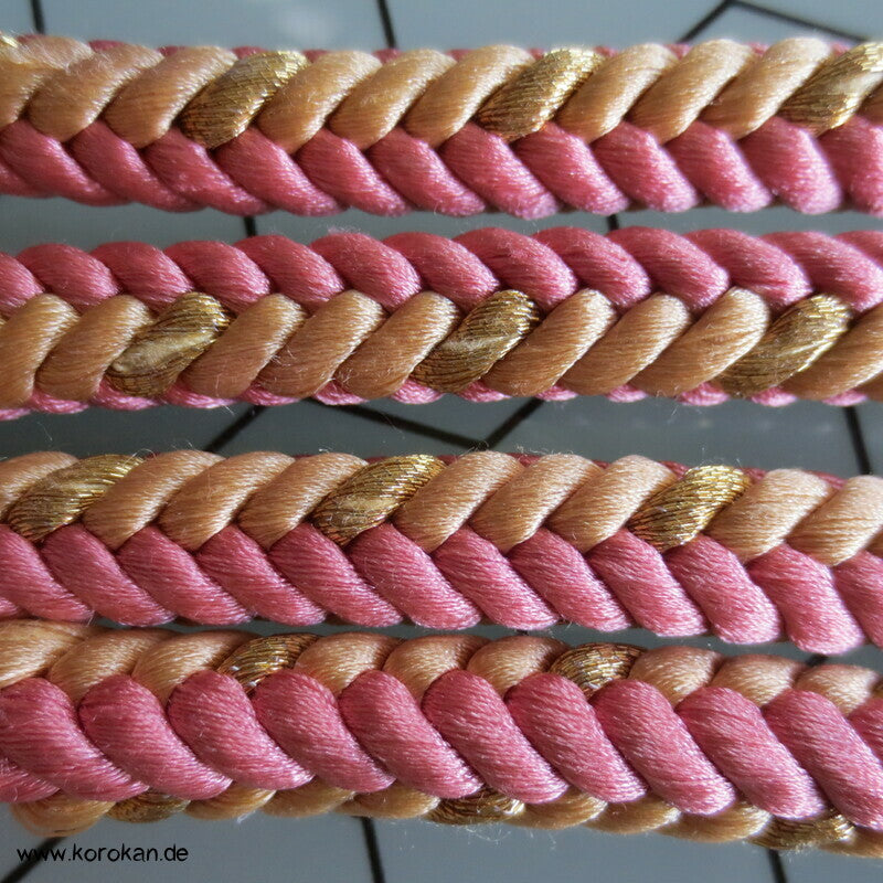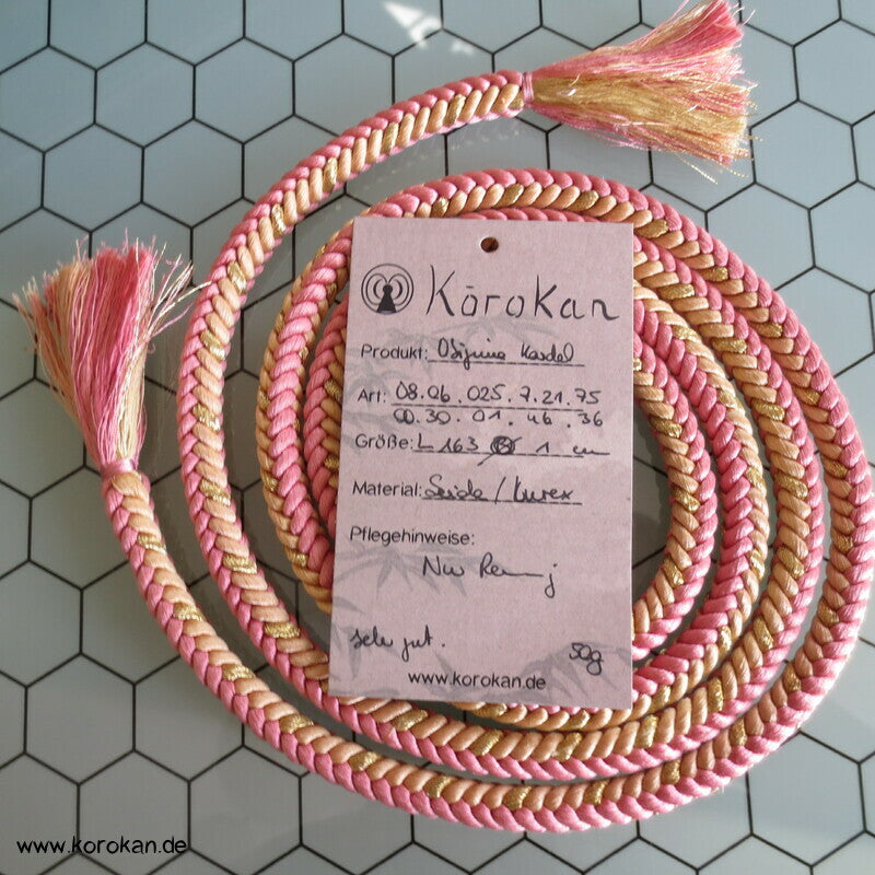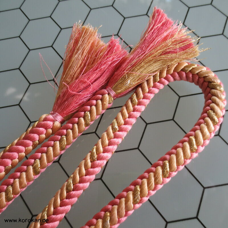 Vintage Seiden Kordel Obijime, hellgelb rosa gold geflochten