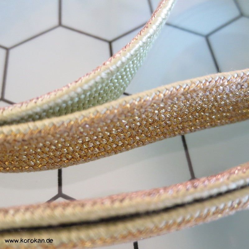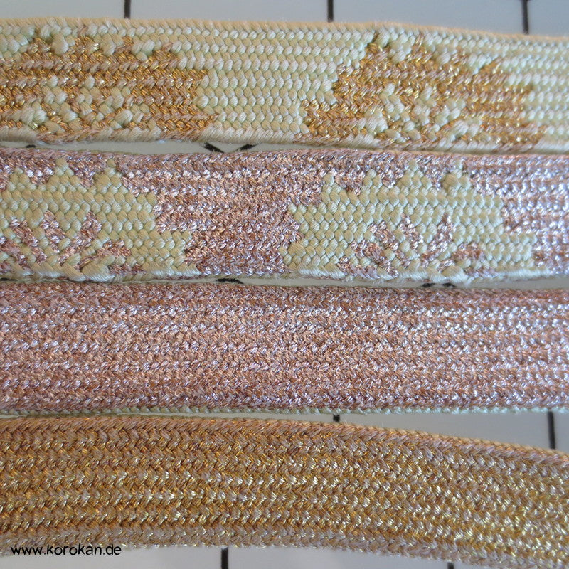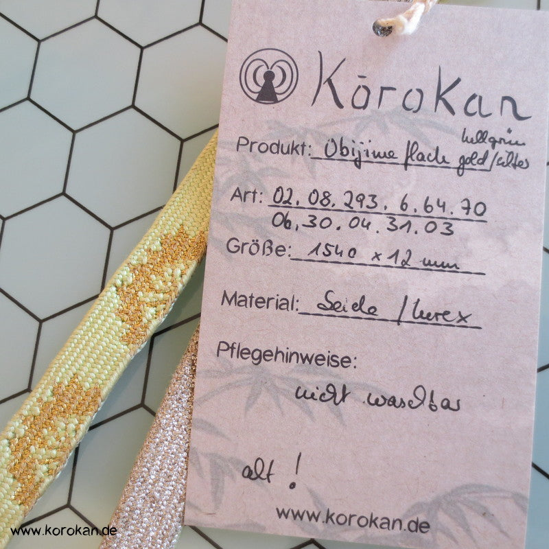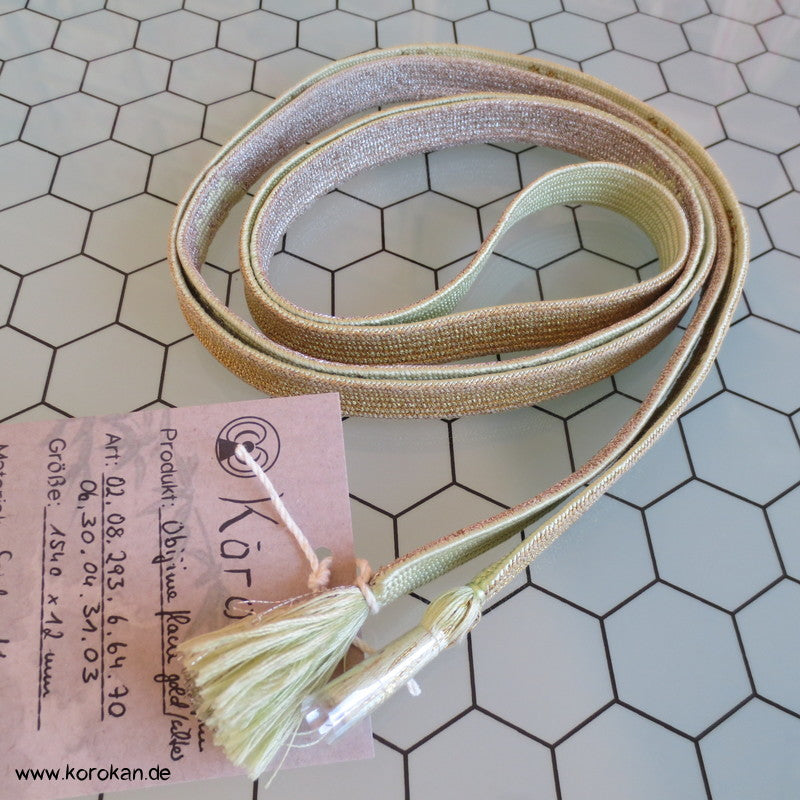 flacher Obijime Blumen blassgrün silber gold wechselseitige Flechtung.