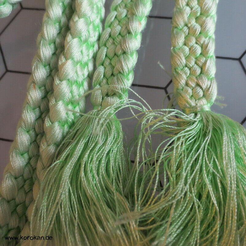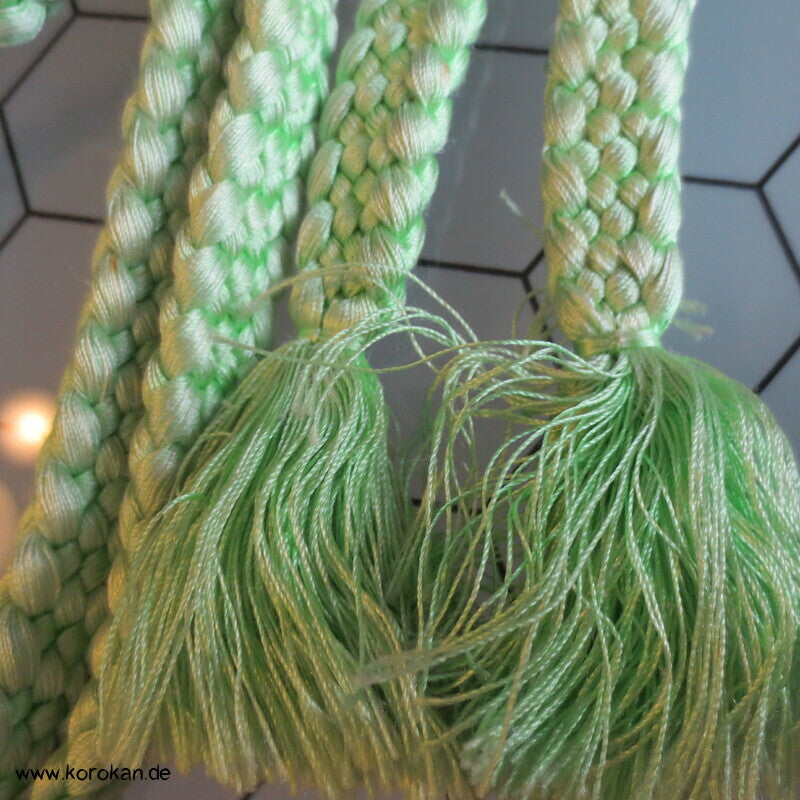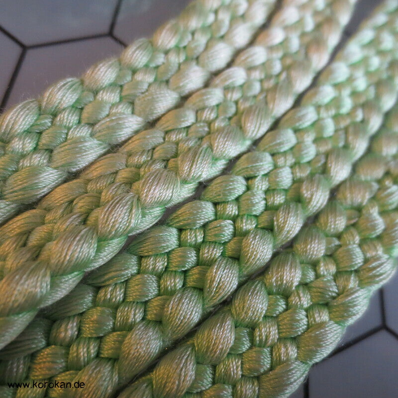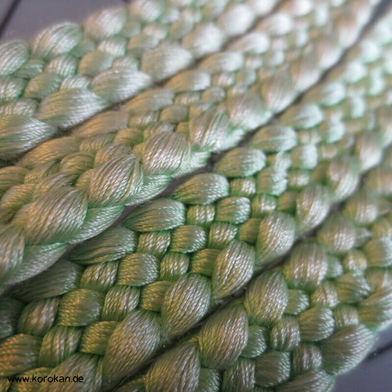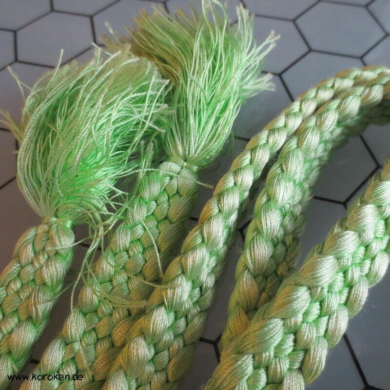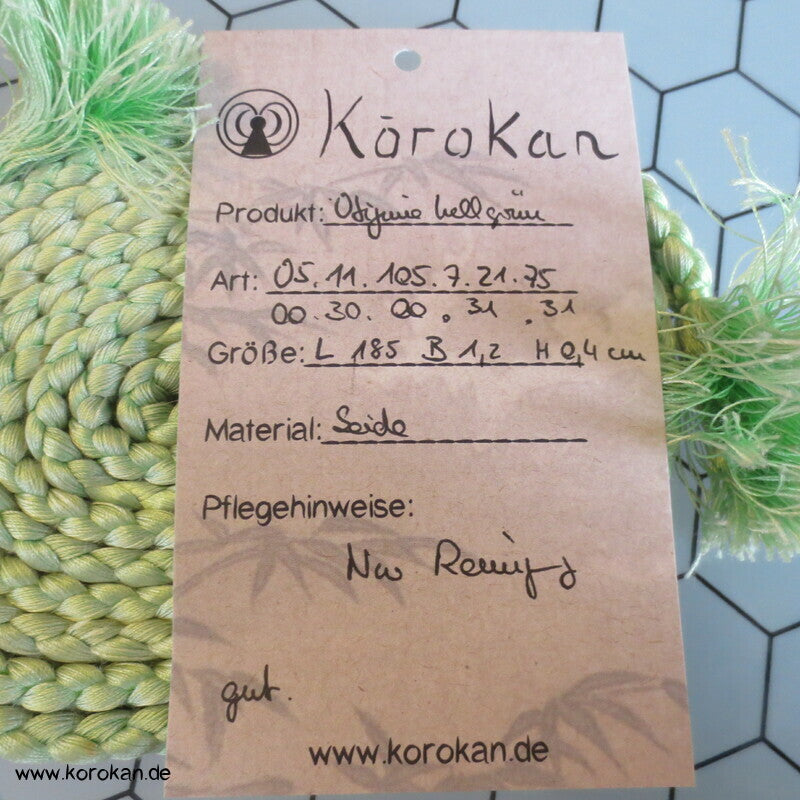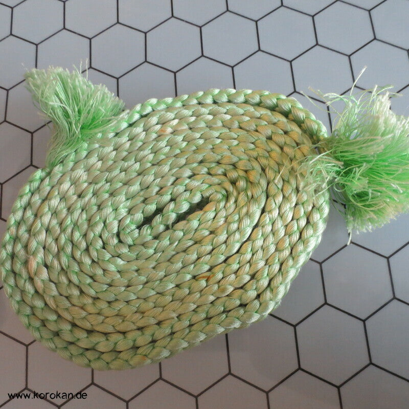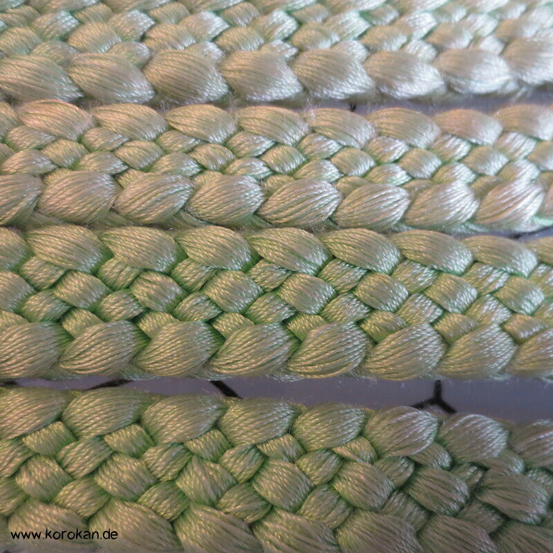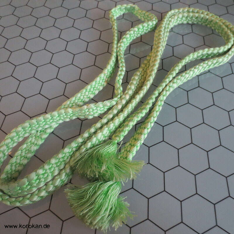 japanischer Flecht Seiden Obijime hellgrün, Farbschattierungen, knubbelige Flechtung